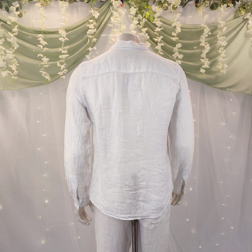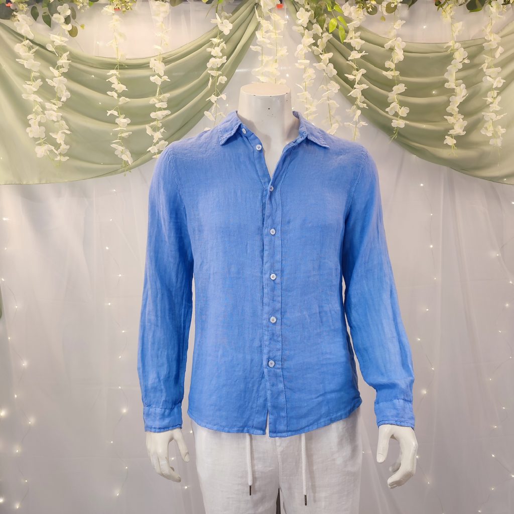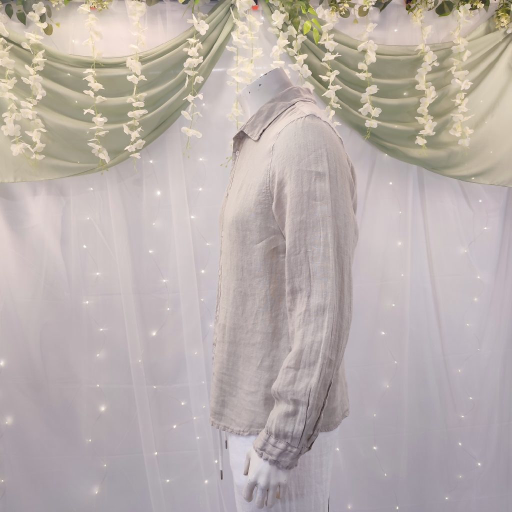 Confeccionada en lino 100 % natural, esta camisa destaca por su tejido ligero, fresco y transpirable, ideal para los días calurosos en la costa o las veladas veraniegas bajo las estrellas. Su diseño atemporal, con manga larga, cuello italiano y cierre de botones, la convierte en una opción versátil, elegante y muy fácil de combinar.
