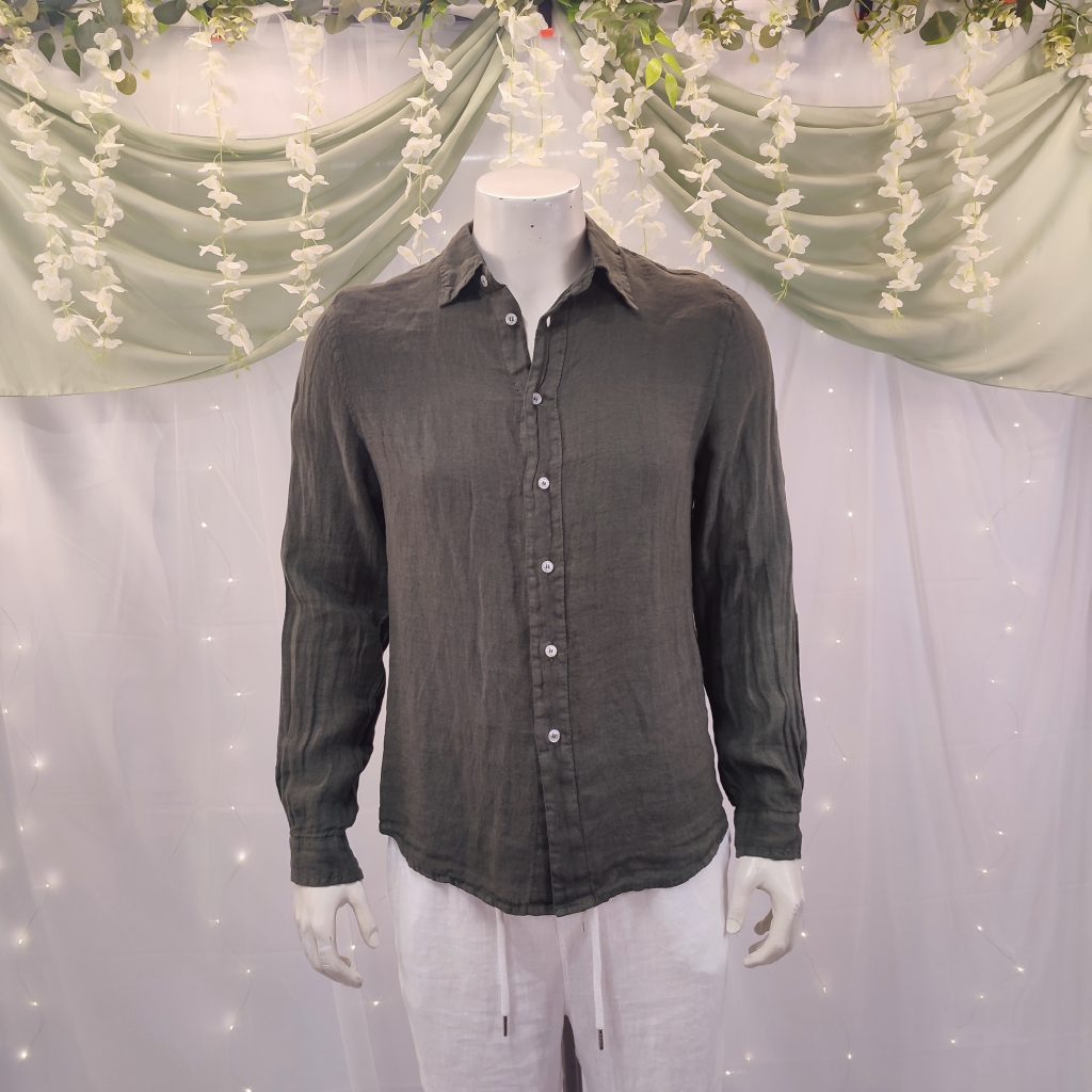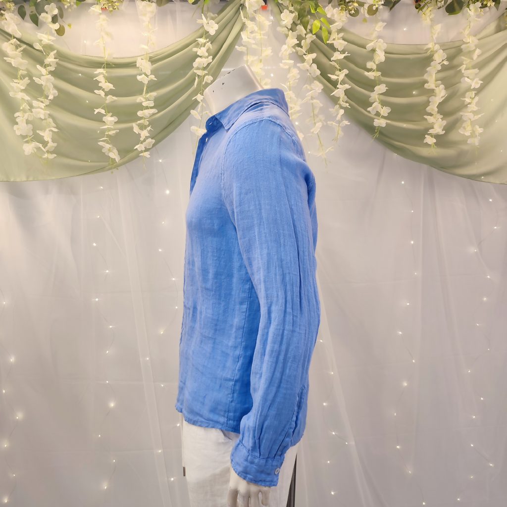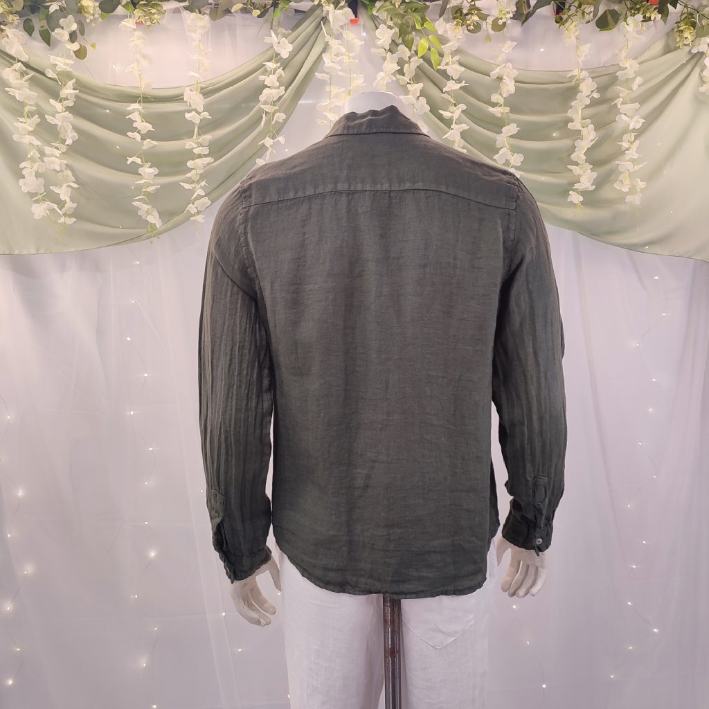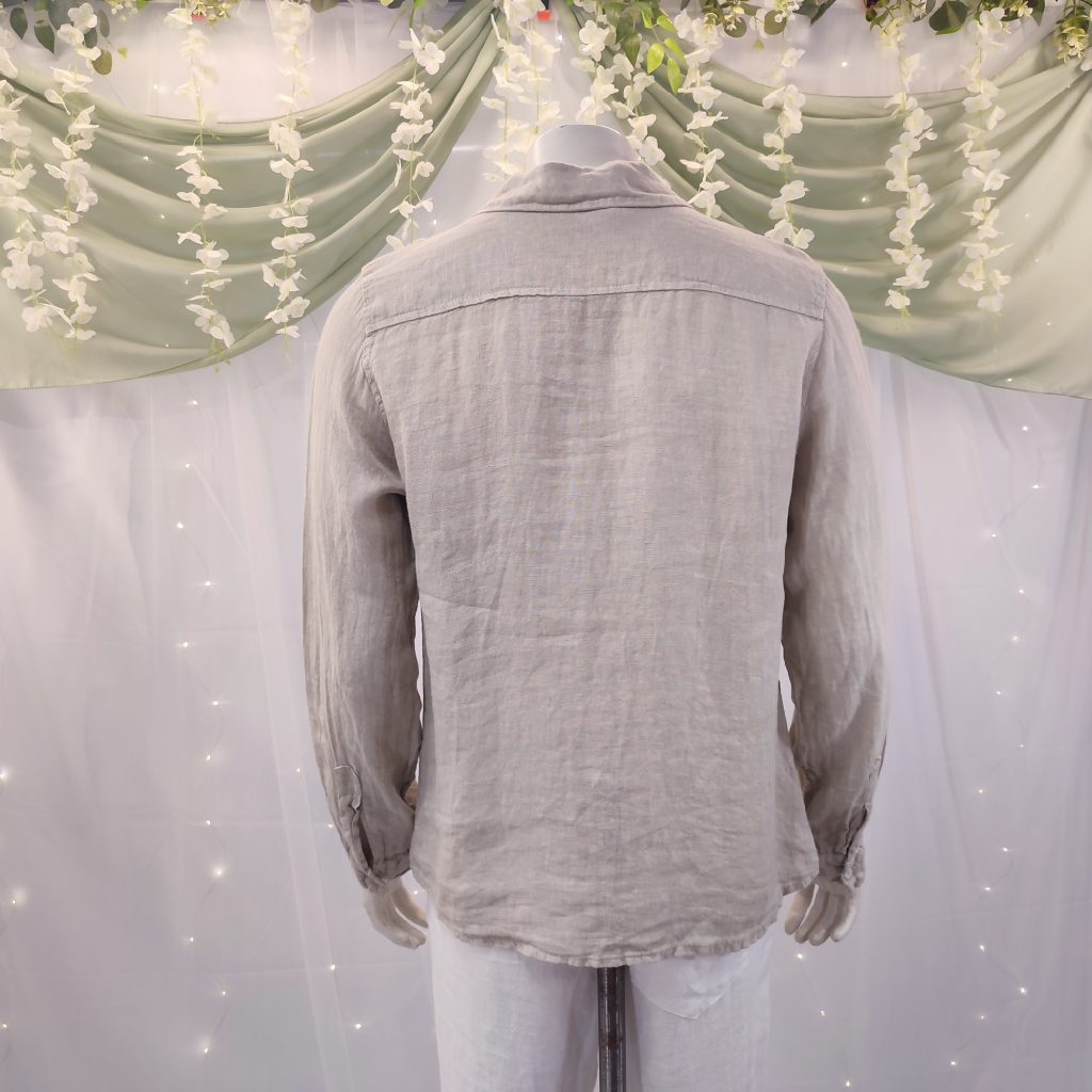 Confeccionada en lino 100 % natural, esta camisa destaca por su tejido ligero, fresco y transpirable, ideal para los días calurosos en la costa o las veladas veraniegas bajo las estrellas. Su diseño atemporal, con manga larga, cuello italiano y cierre de botones, la convierte en una opción versátil, elegante y muy fácil de combinar.