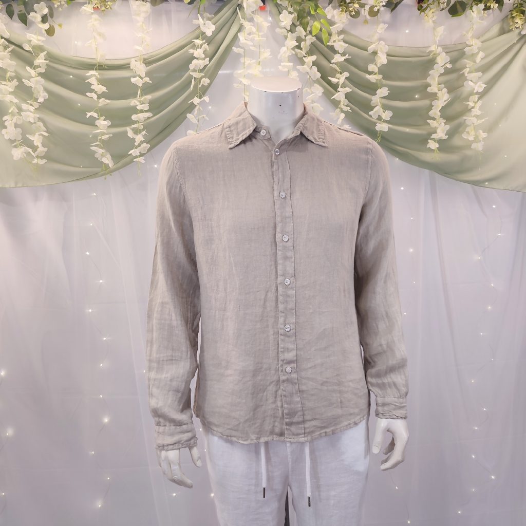 Estas camisas también funcionan muy bien para bodas informales, eventos de verano o celebraciones en la playa. El lino transmite naturalidad y frescura sin perder estilo. El modelo blanco o beige, por ejemplo es ideal para este tipo de ocasiones cuando se combina con pantalones de lino en blanco o crema y zapatos color arena.