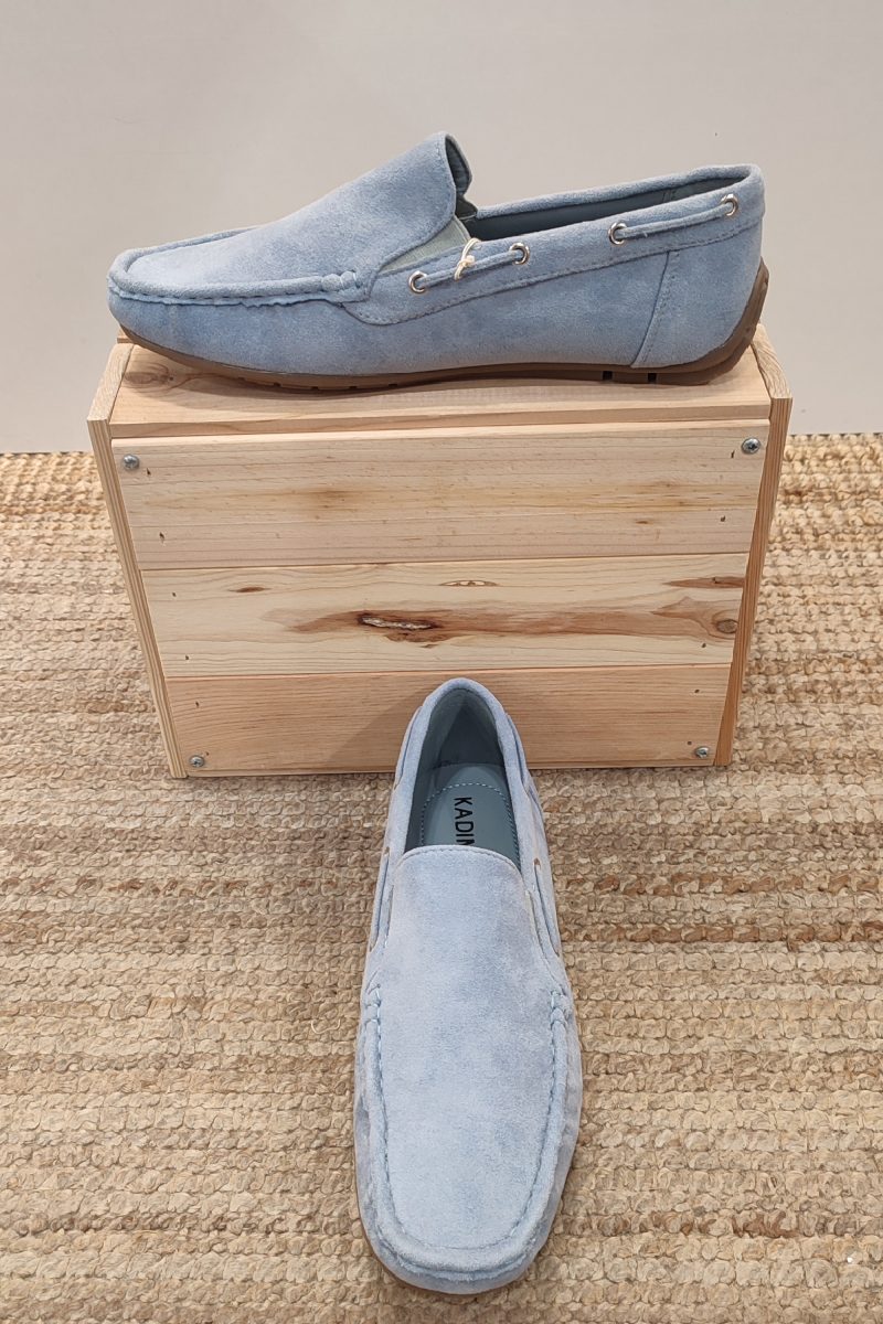 Mocasines básicos lisos de ante con la parte superior completamente lisa . Contiene una suela de goma y en su interior una plantilla sumamente cómoda, perfecta para el uso diario y la correcta amortiguación del pie. Está disponible en dos tonos muy veraniegos, azul claro y camel.