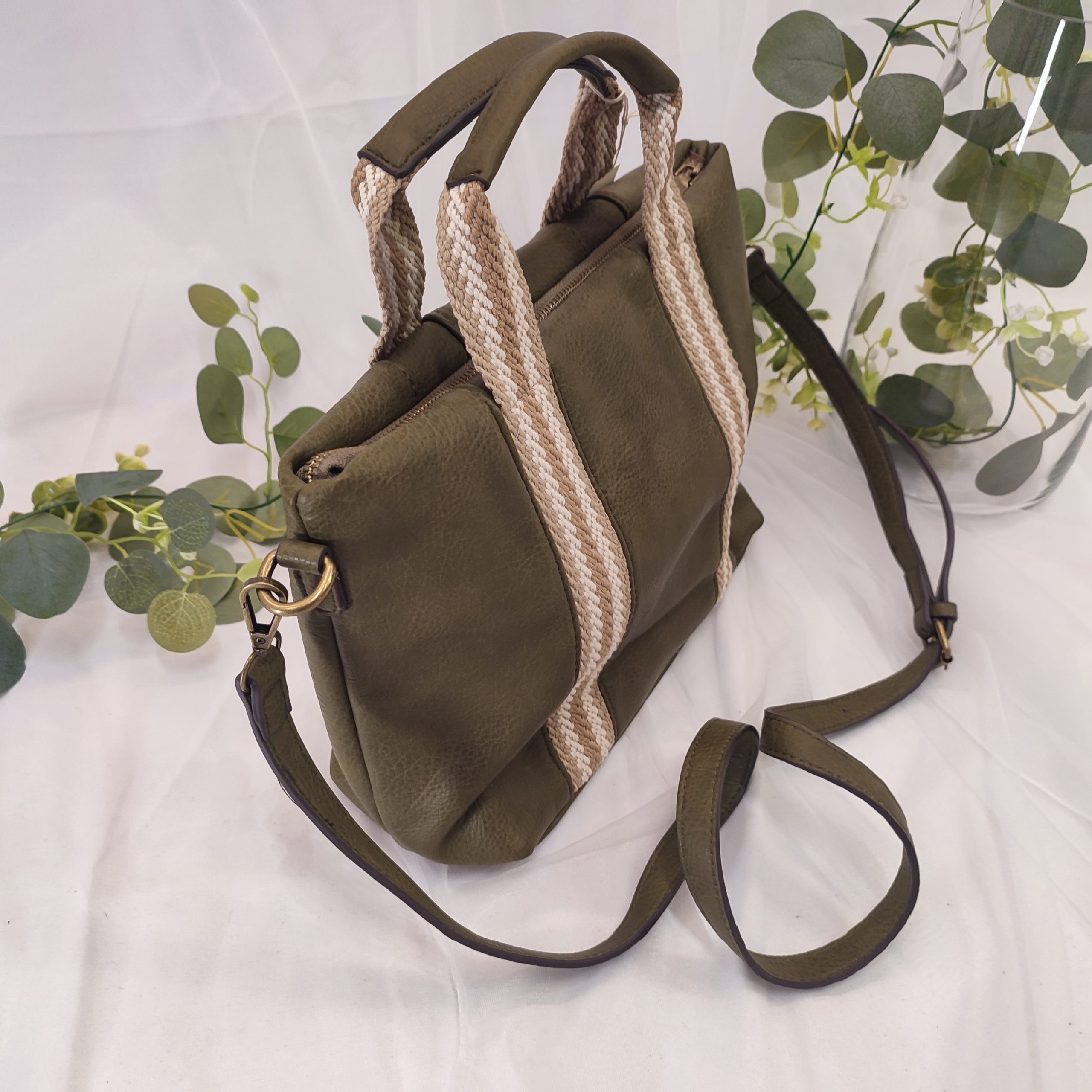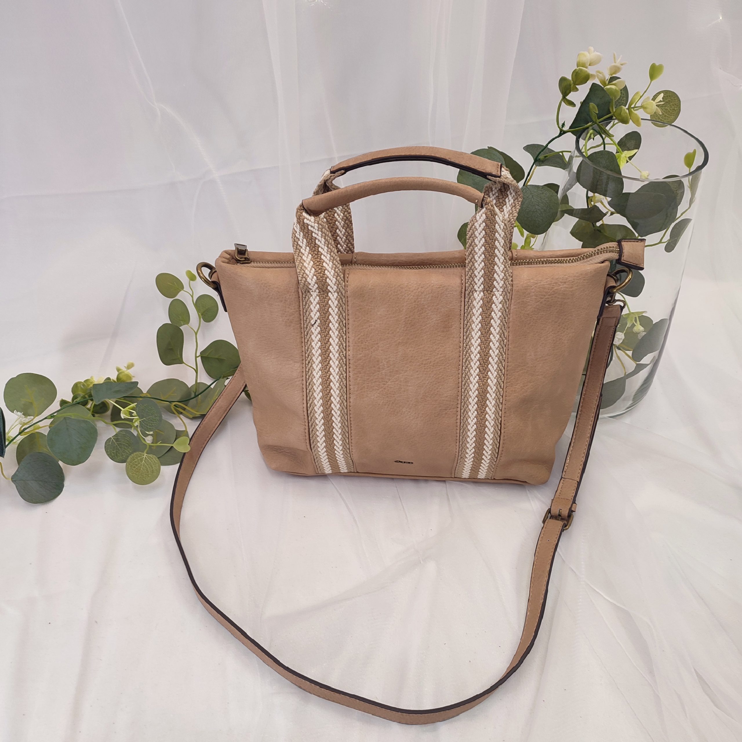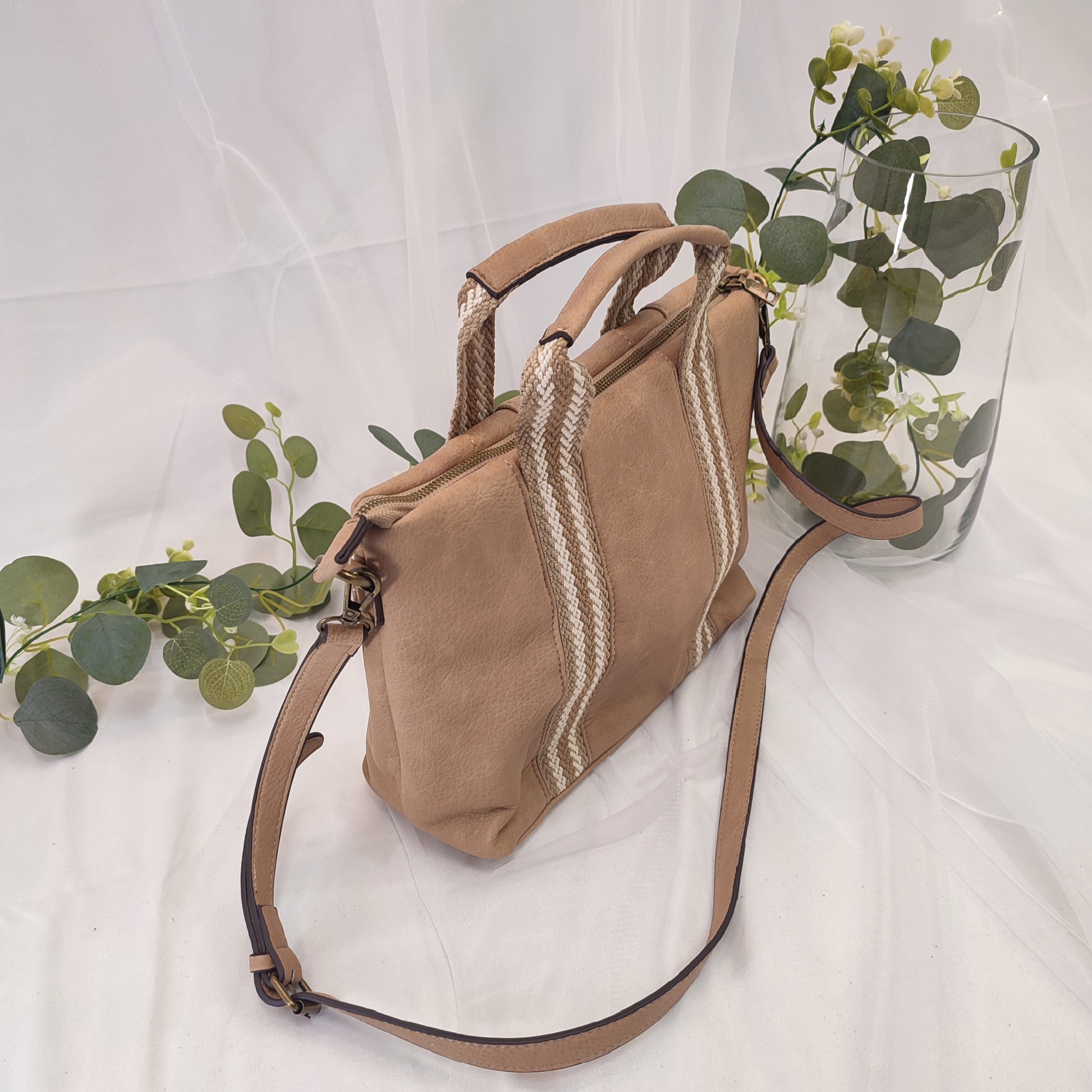 Este bolso de polipiel de gran tamaño es la combinación perfecta entre elegancia y funcionalidad. Su diseño moderno y sobrio, ideal para cualquier ocasión, lo convierte en una pieza esencial para tu armario. A pesar de su gran tamaño, es sorprendentemente liviano, lo que lo hace cómodo y fácil de llevar durante todo el día. En su interior, cuenta con dos prácticos bolsillos: uno con cremallera para guardar tus objetos más valiosos de forma segura, y otro abierto, dividido en dos compartimentos, uno ligeramente más pequeño que el otro, para organizar mejor tus pertenencias. Además, el bolso viene con una correa de poli piel ajustable y extraíble, lo que te permite llevarlo de manera más cómoda según tu preferencia. Lo que realmente le da un toque único es su diseño étnico e informal. Las dos asas cortas, hechas de poli piel, están unidas al bolso por unas tiras de hilo grueso de algodón en tonos beige, que atraviesan toda la parte frontal y posterior del bolso, creando un contraste perfecto entre la sobriedad del material y el toque artesanal de las tiras. Por dentro, el bolso está forrado con una tela de algodón de tono marrón, que le da un acabado suave y sofisticado. Gracias a sus dimensiones y su forma de maletín moderno, es el accesorio ideal para llevar a la oficina, ya que puedes transportar tu portátil de tamaño pequeño o varios cuadernos con total comodidad. Este bolso no solo es práctico, sino también un excelente accesorio para añadir un toque de estilo a tu día a día. ¡No puede faltar en tu colección! Medidas: 30 cm ancho y 24 cm alto.