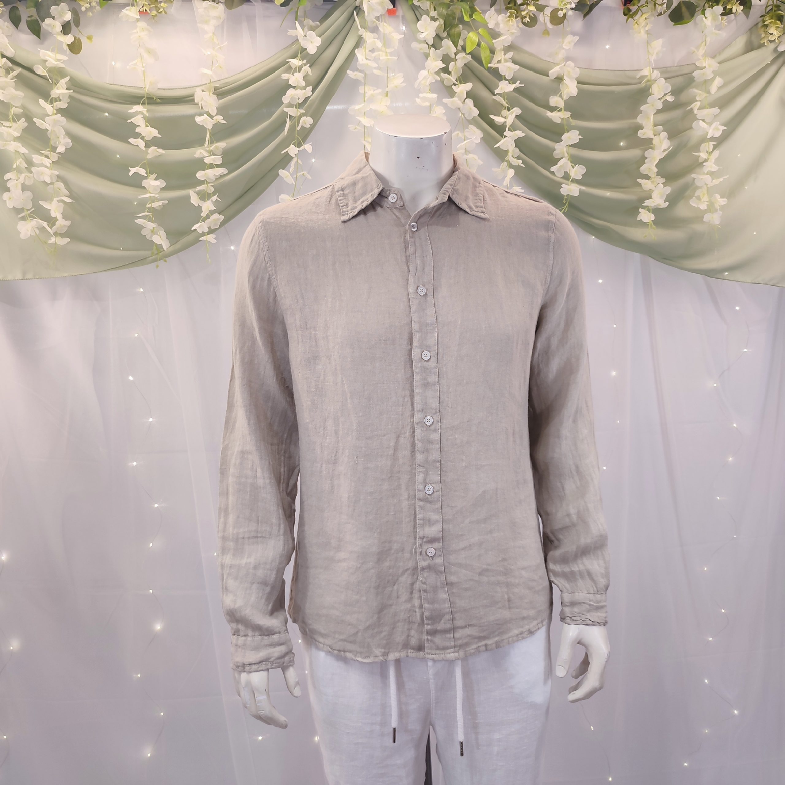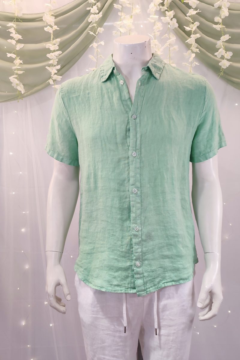 Descubre la elegancia atemporal con nuestra camisa de lino para hombre, confeccionada con lino italiano de la más alta calidad. Su diseño minimalista, completamente liso, y el sofisticado cuello italiano, hacen de esta prenda una opción ideal tanto para ocasiones formales como informales.