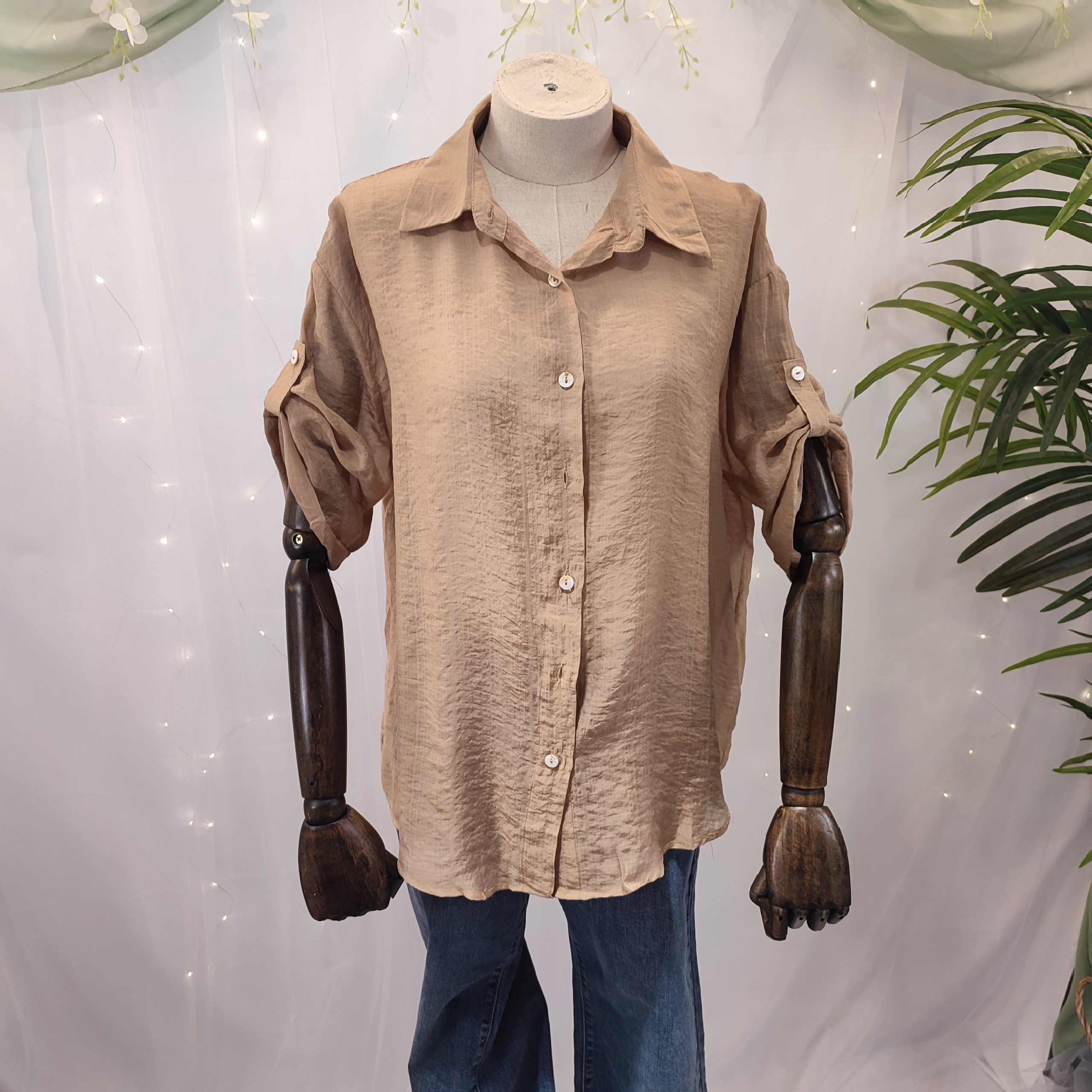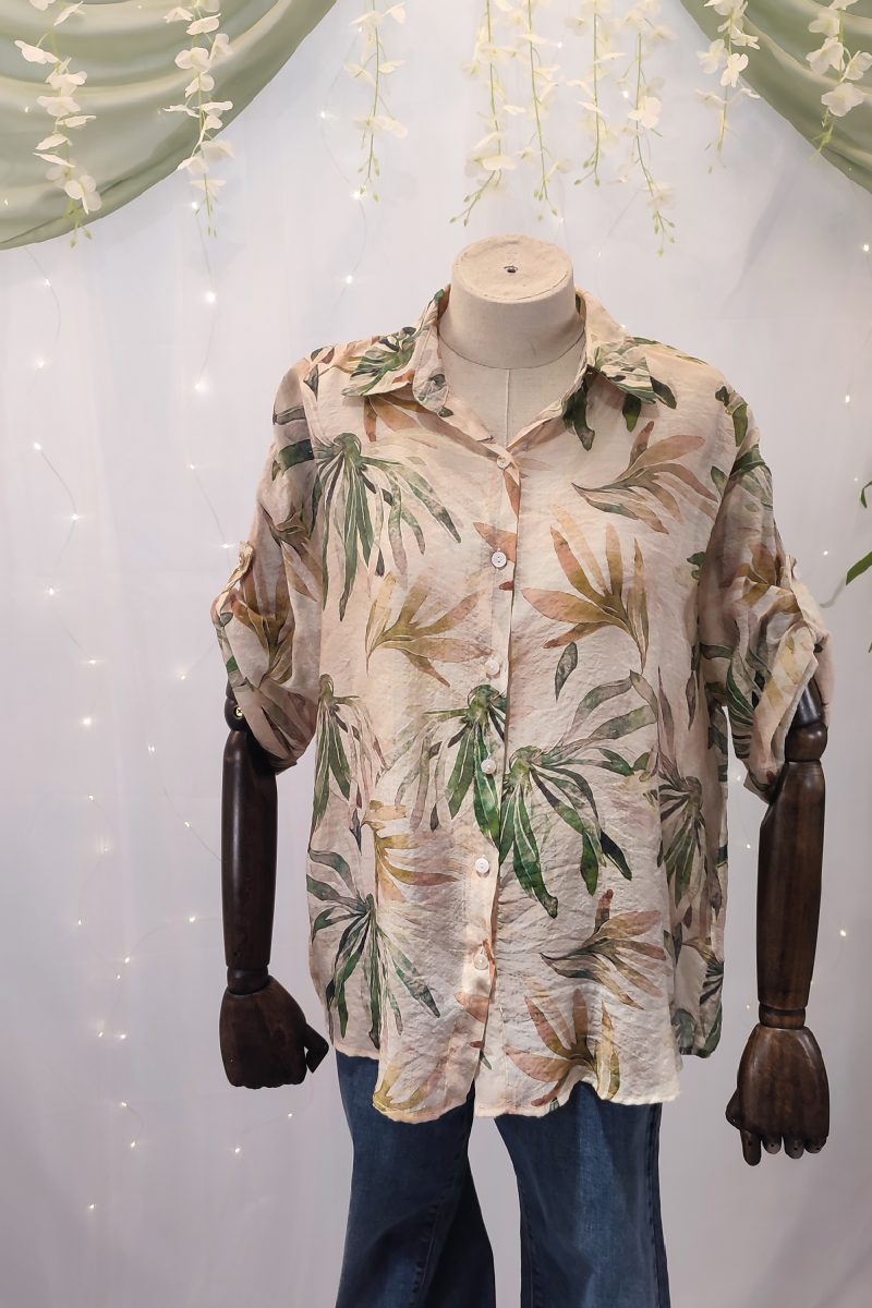 Sencilla, elegante y muy fácil de combinar. Esta camisa de mujer está confeccionada en rayón, un tejido ligero, fresco y transpirable que imita a la perfección la textura del lino, pero con un acabado más suave y asequible. Gracias a su estructura semitransparente y su caída fluida, esta prenda se convierte en una opción ideal para los meses más cálidos.