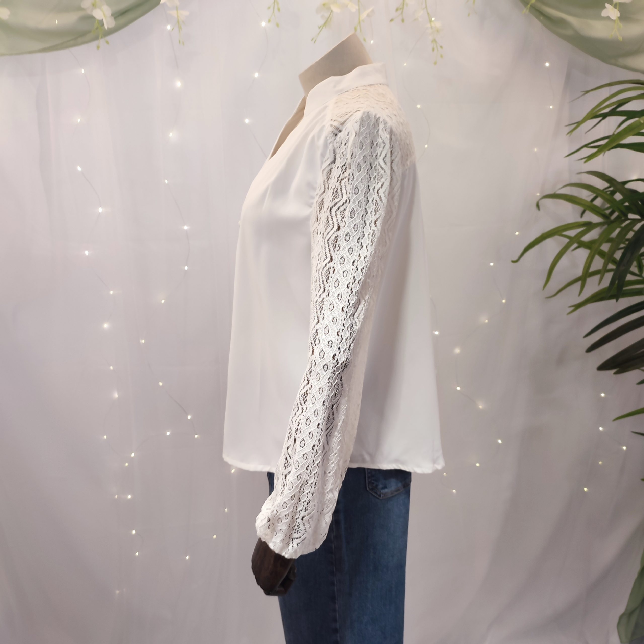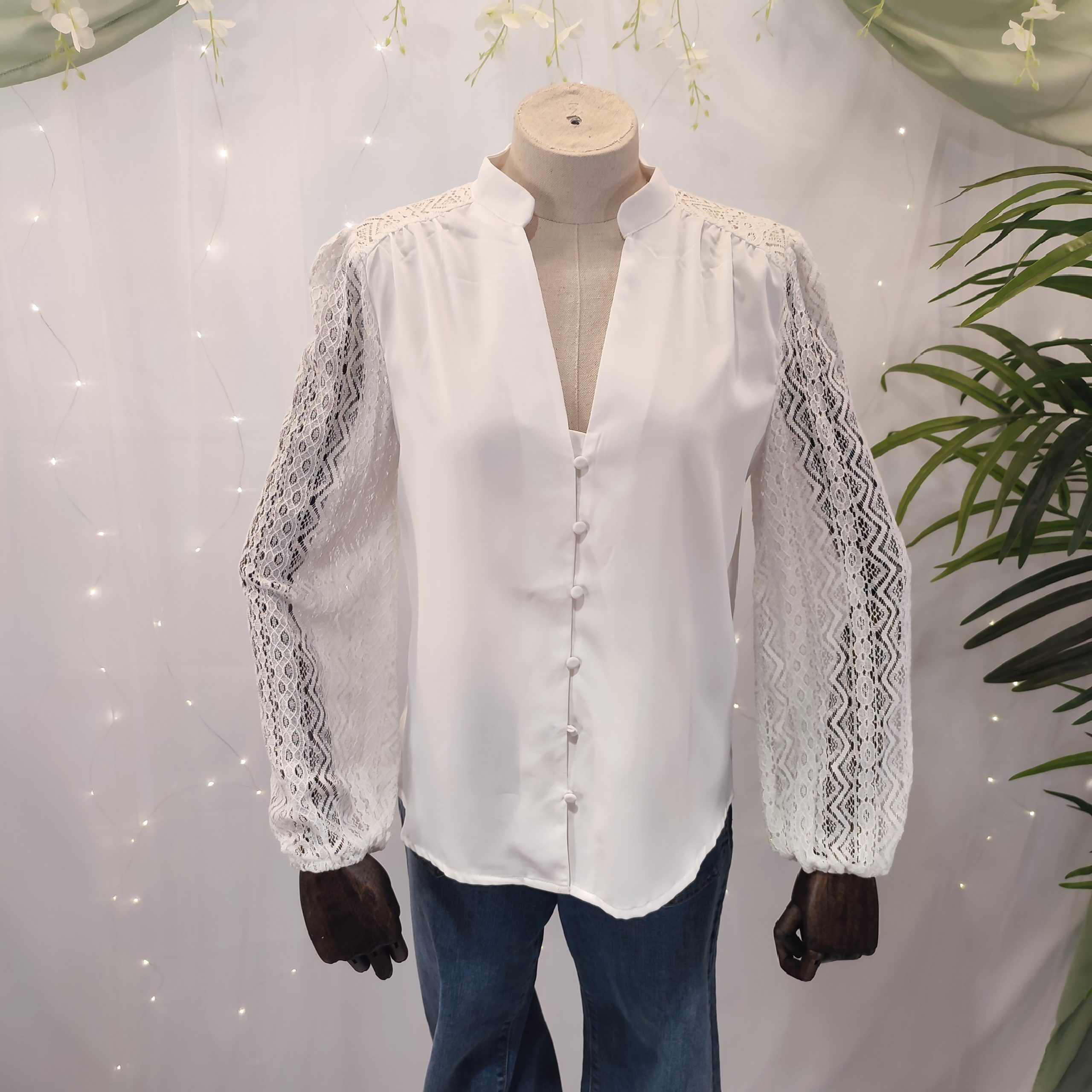 Nuestra blusa blanca para mujer combina elegancia y frescura en una prenda versátil y sofisticada. Diseñada con un delicado cuello mao que se abre en un sutil escote en pico, esta pieza resalta la feminidad con un toque moderno y refinado.
