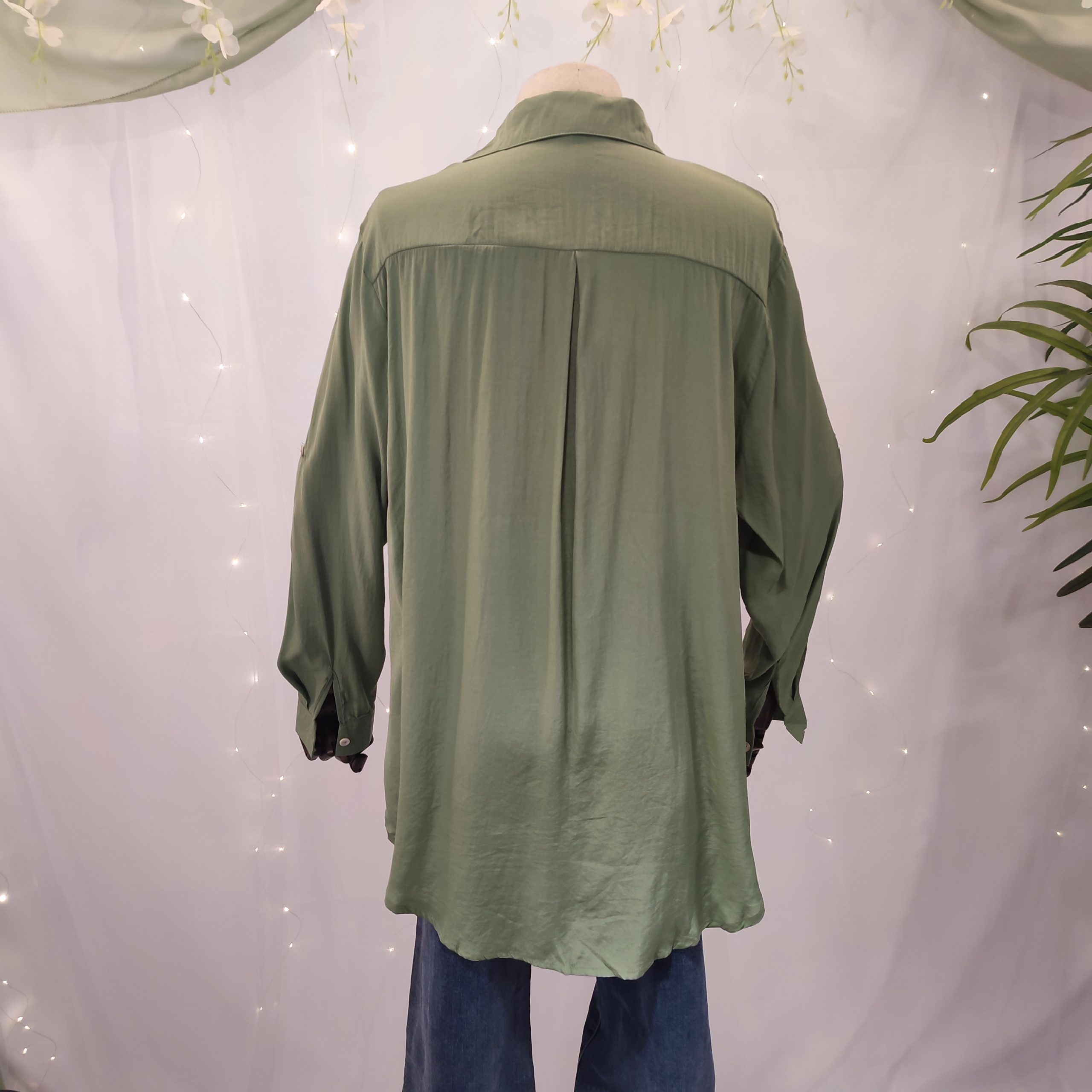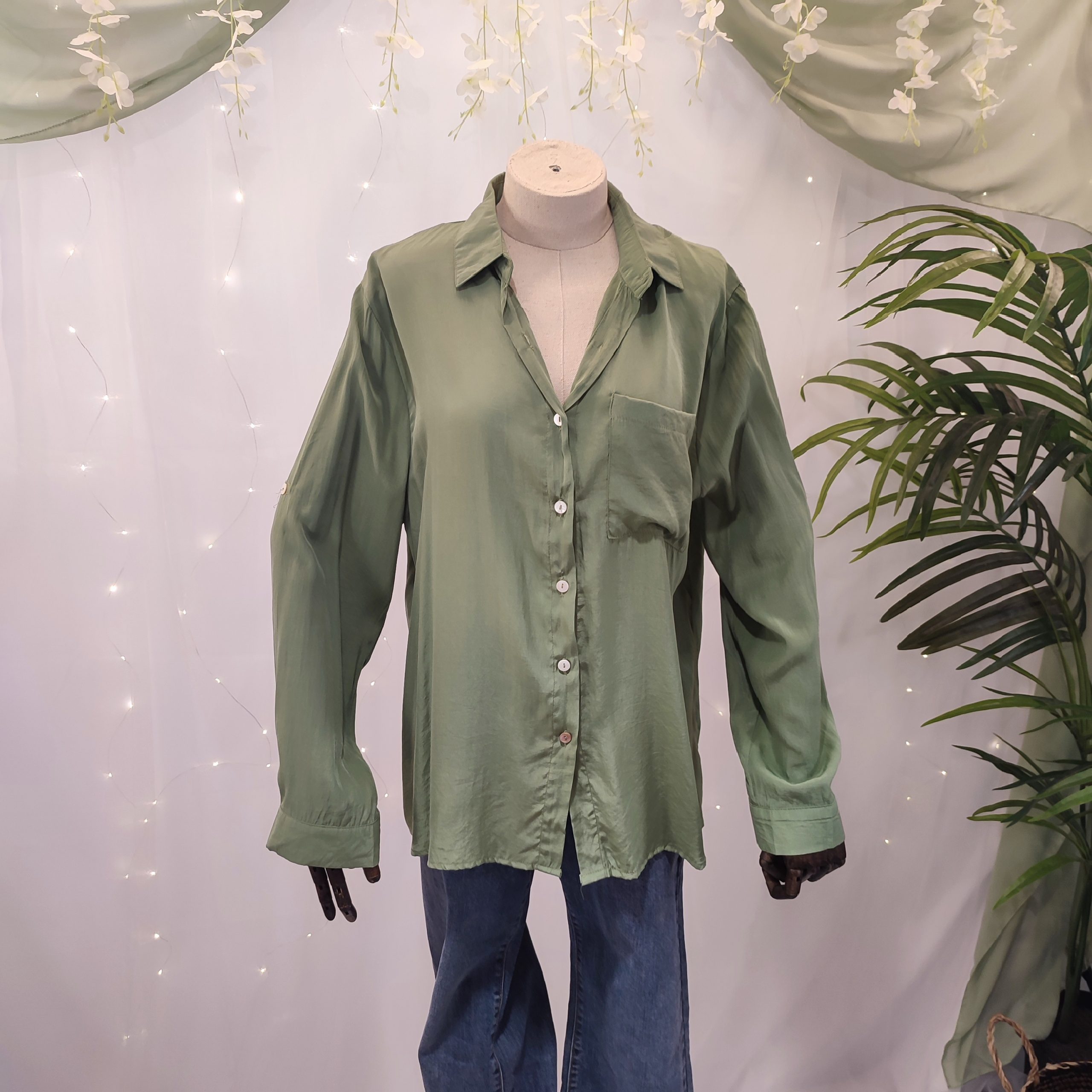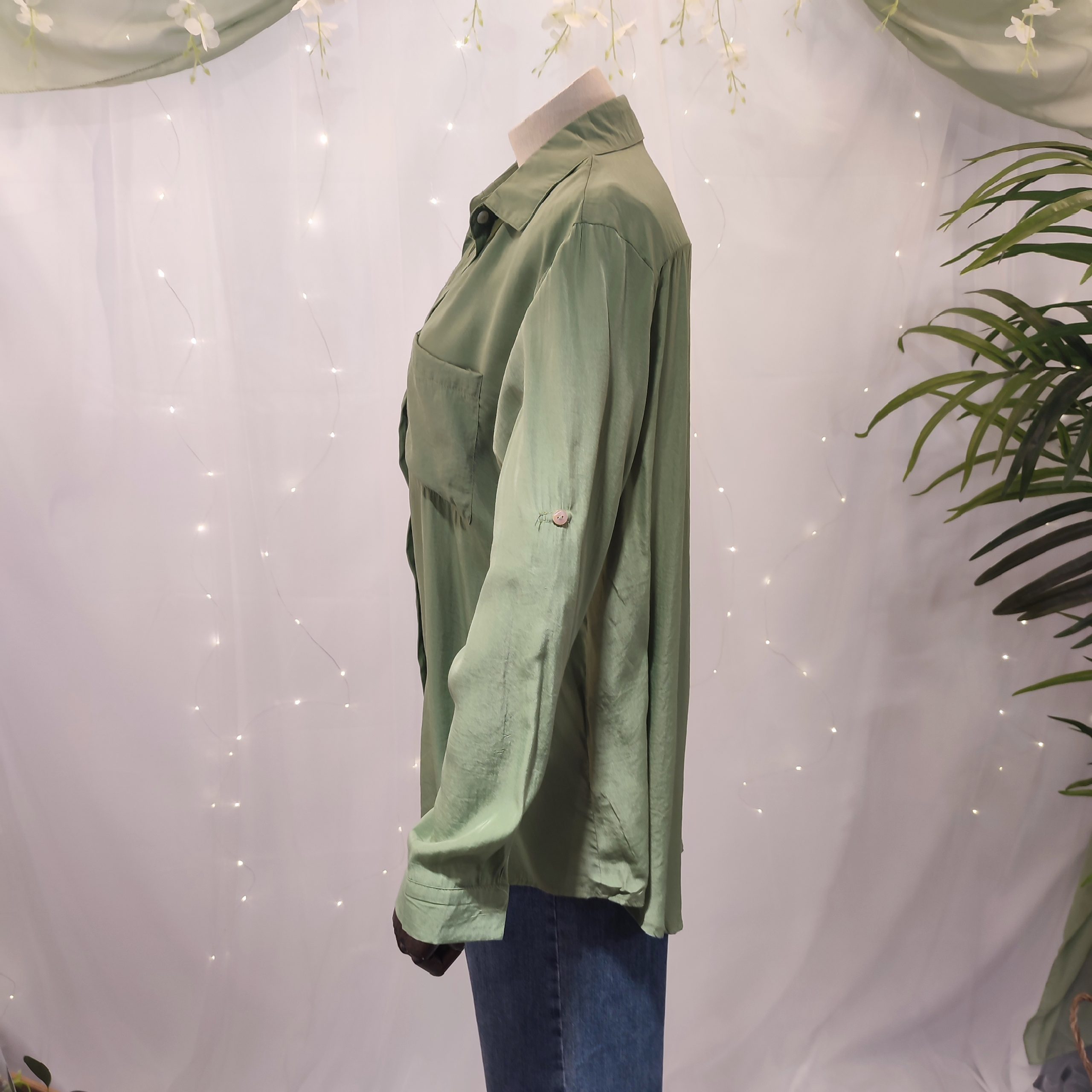 Versatilidad y estilo en una prenda esencial. Suma elegancia relajada a tu armario con esta camisa para mujer en color verde, de diseño limpio y atemporal. Su tejido completamente liso y su tono vibrante pero sofisticado la convierten en una prenda ideal para looks tanto casuales como más formales.