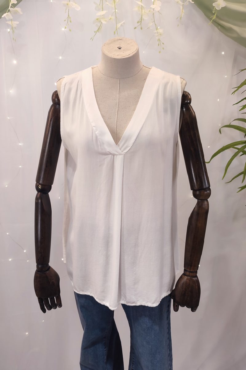 El cuello en sutil forma de pico ancho añade un toque femenino y favorecedor al rostro, manteniendo la esencia minimalista del diseño. Su corte recto, con el mismo largo tanto por delante como por detrás, crea una silueta equilibrada que se adapta a diferentes estilos y ocasiones.