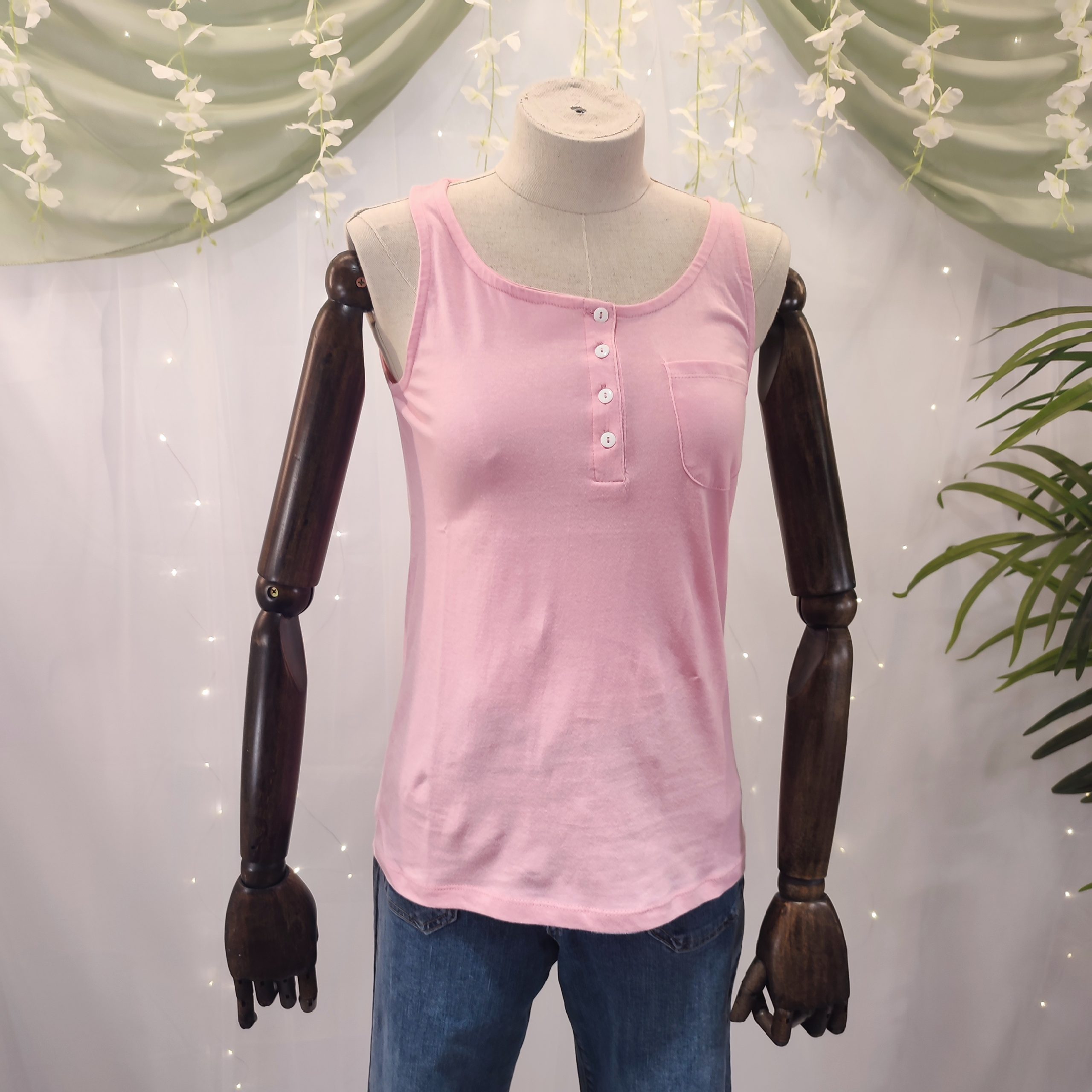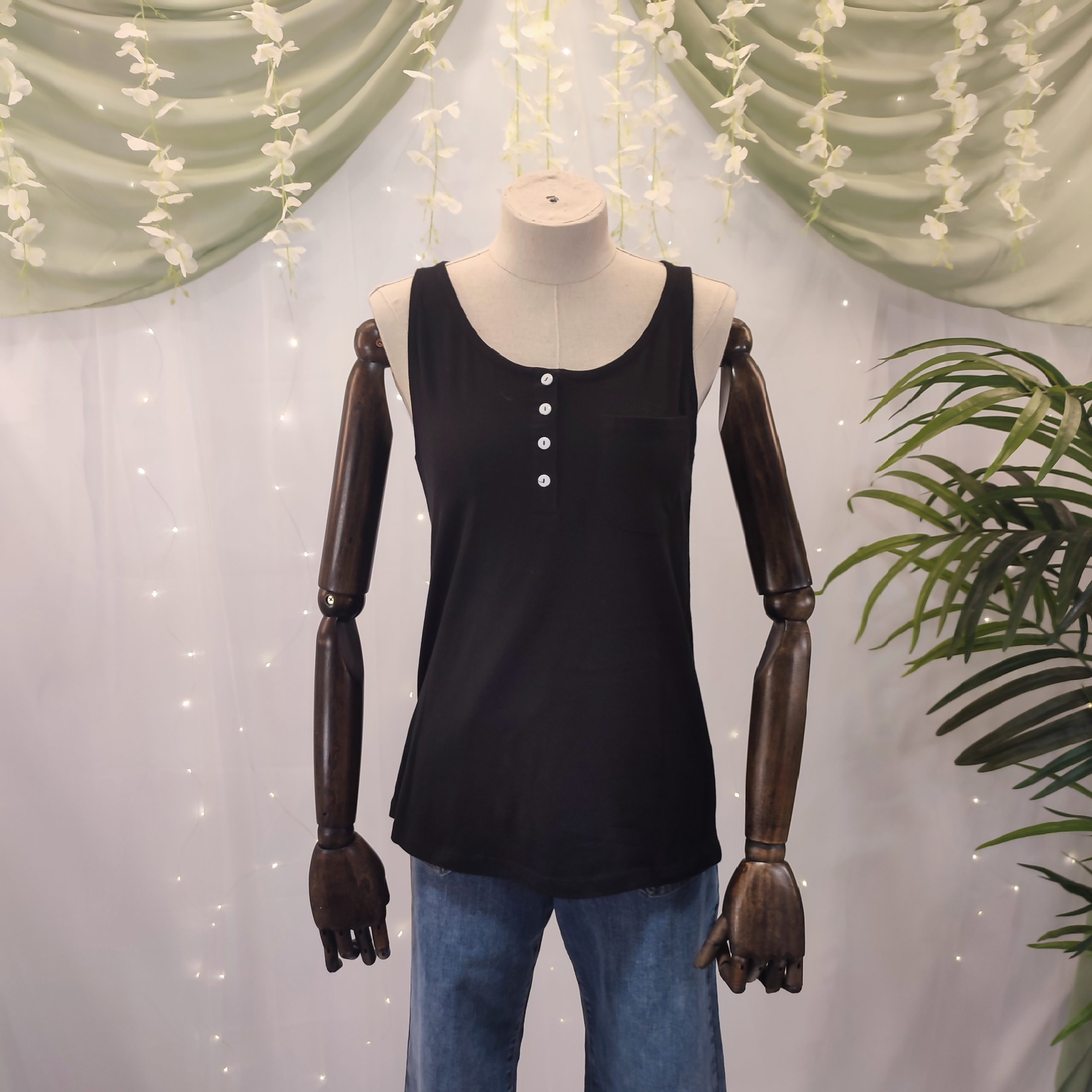 Confeccionada en un tejido suave y ligero, esta camiseta ha sido pensada para ofrecerte el máximo confort en los días más calurosos. Su corte favorecedor se adapta a diferentes tipos de silueta, mientras que el cuello redondo con cuatro botones decorativos y funcionales añade un detalle distintivo que marca la diferencia.