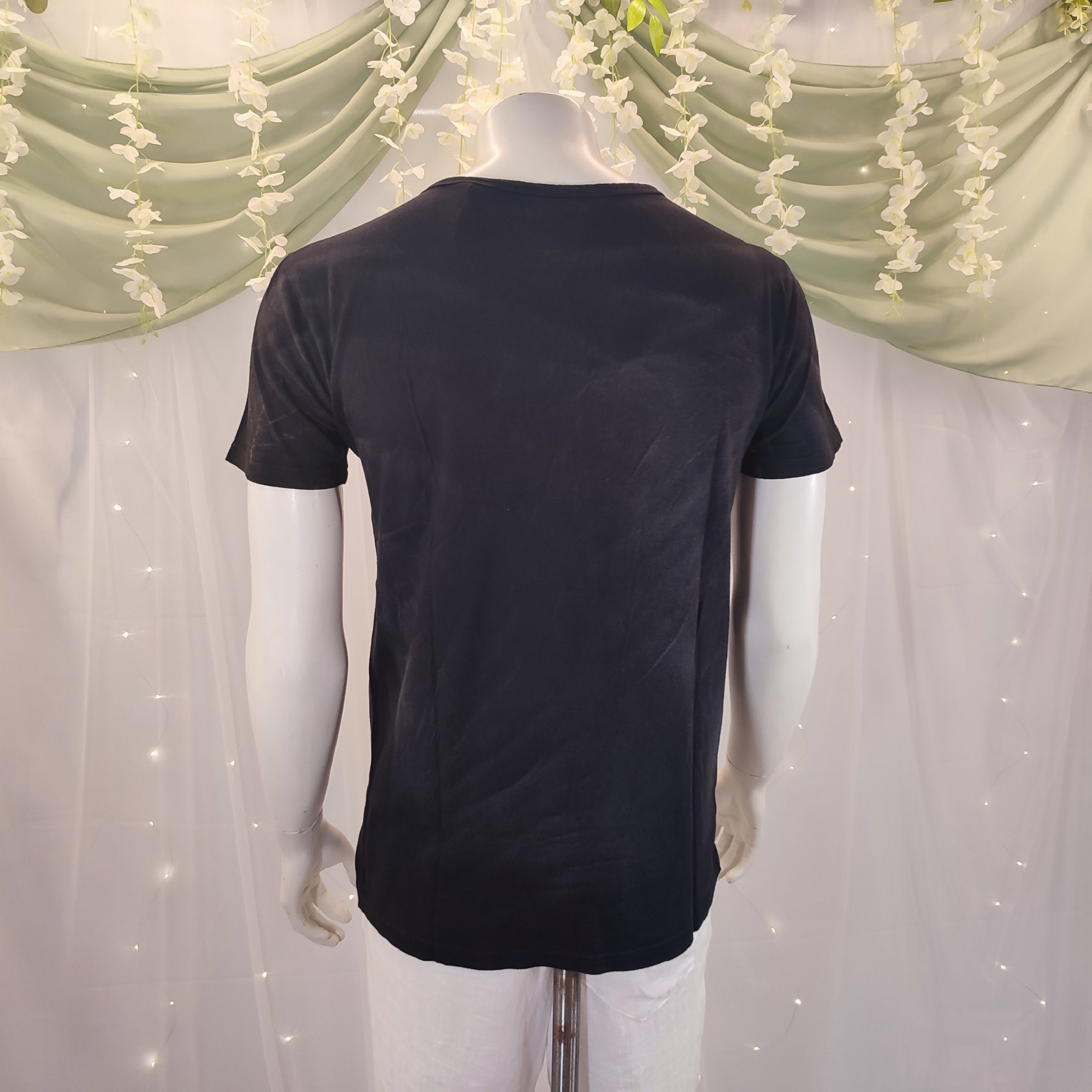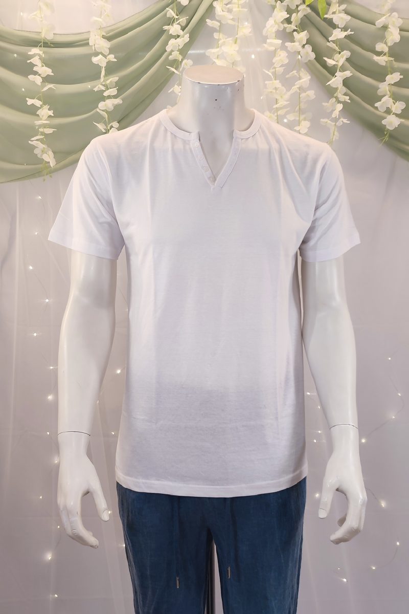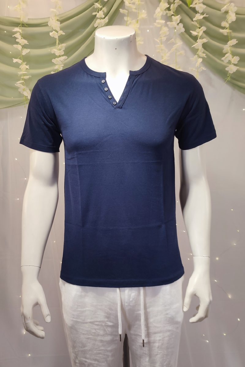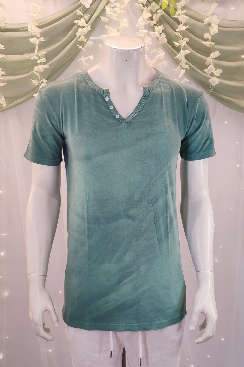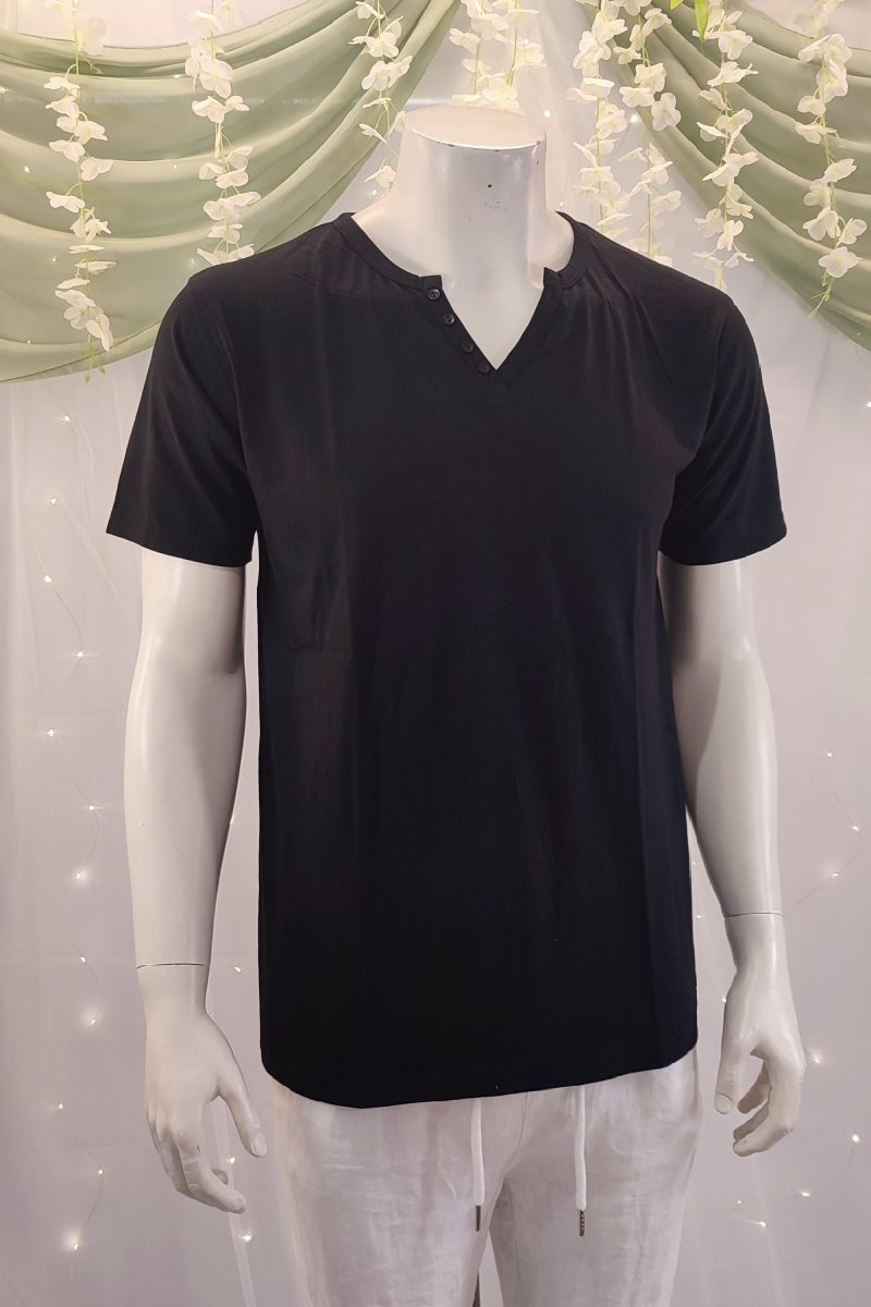 Esta camiseta de algodón negra es una verdadera joya que combina comodidad, estilo y tradición. Con un elegante cuello de pico, cuenta con botones decorativos blancos que añaden un toque de contraste sutil y sofisticado. Su acabado “lavado a la piedra”, una técnica artesanal típica de las Islas Baleares, le proporciona un aspecto único y una suavidad excepcional al tacto.