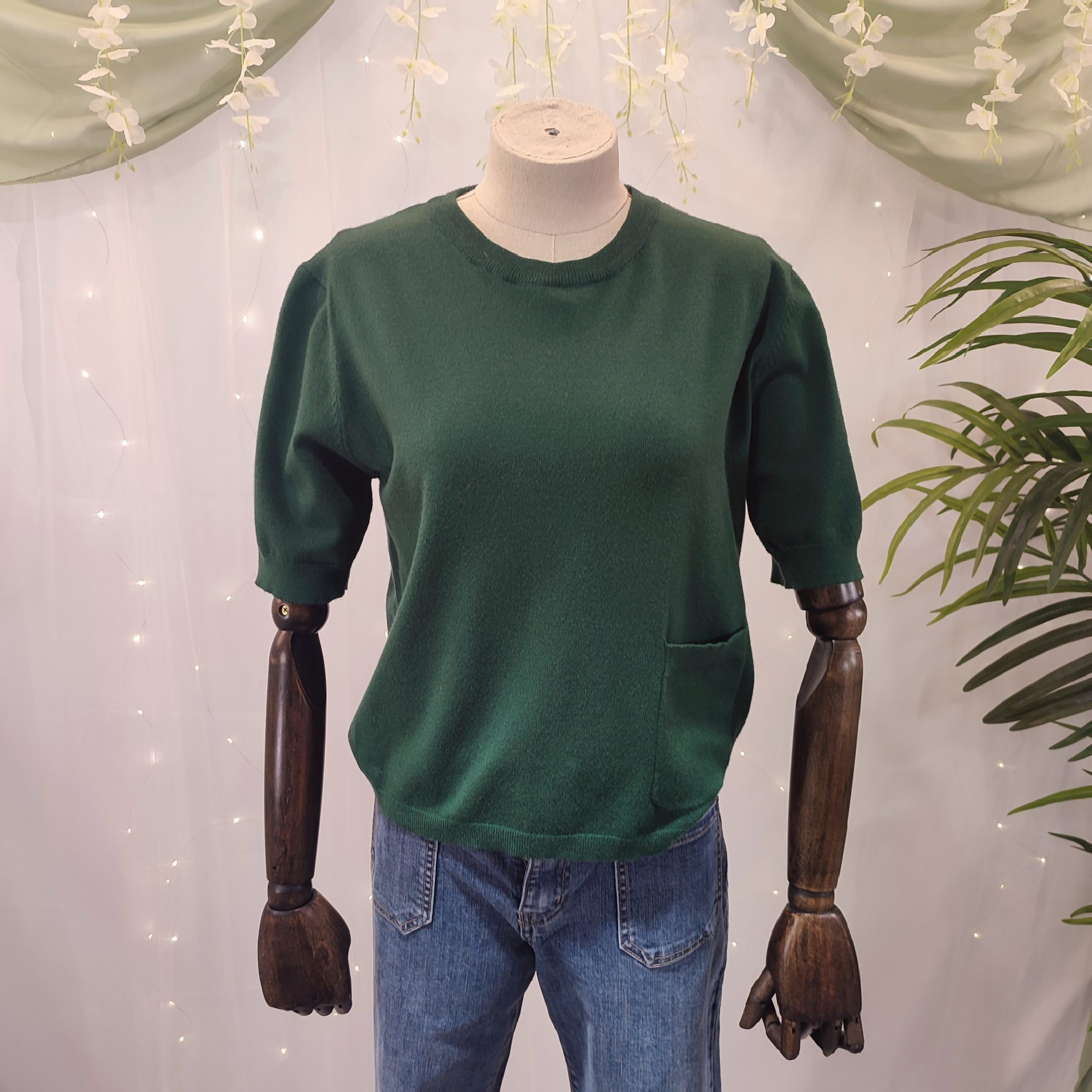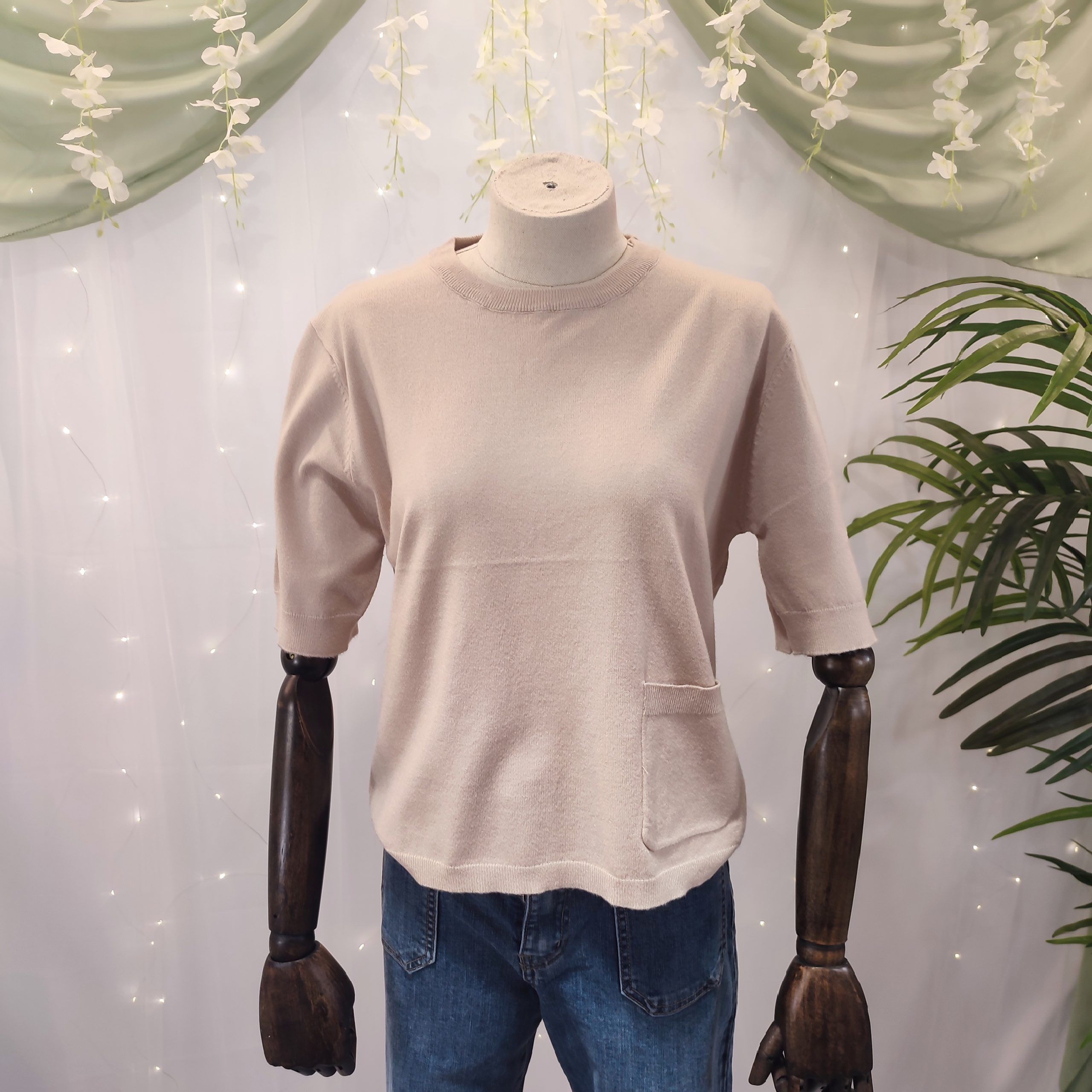 En la parte delantera inferior izquierda, se encuentra un bolsillo funcional, perfectamente integrado al diseño. Este detalle no solo añade practicidad, sino que también embellece la camiseta con un toque original y bonito, rompiendo la uniformidad de forma delicada y armoniosa.