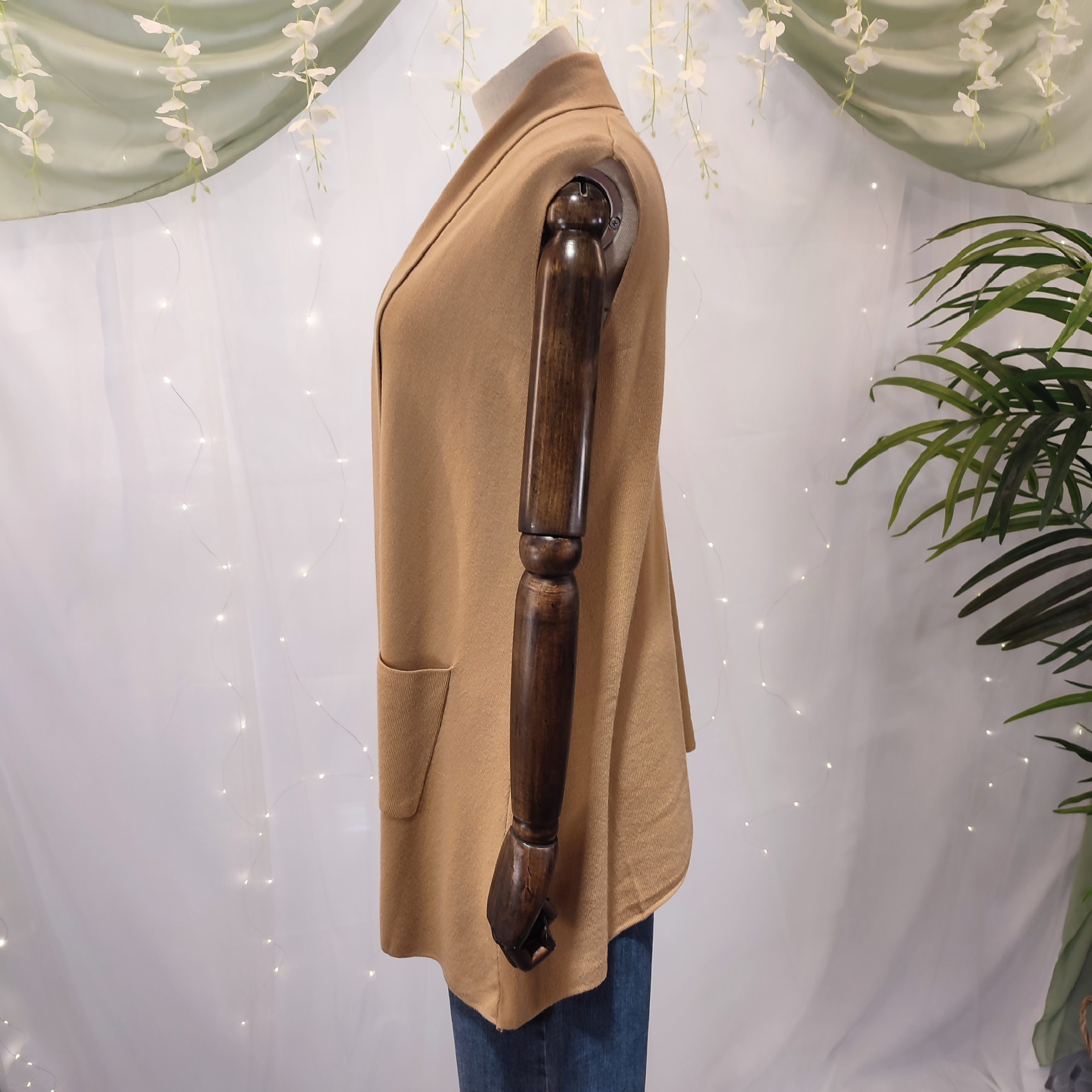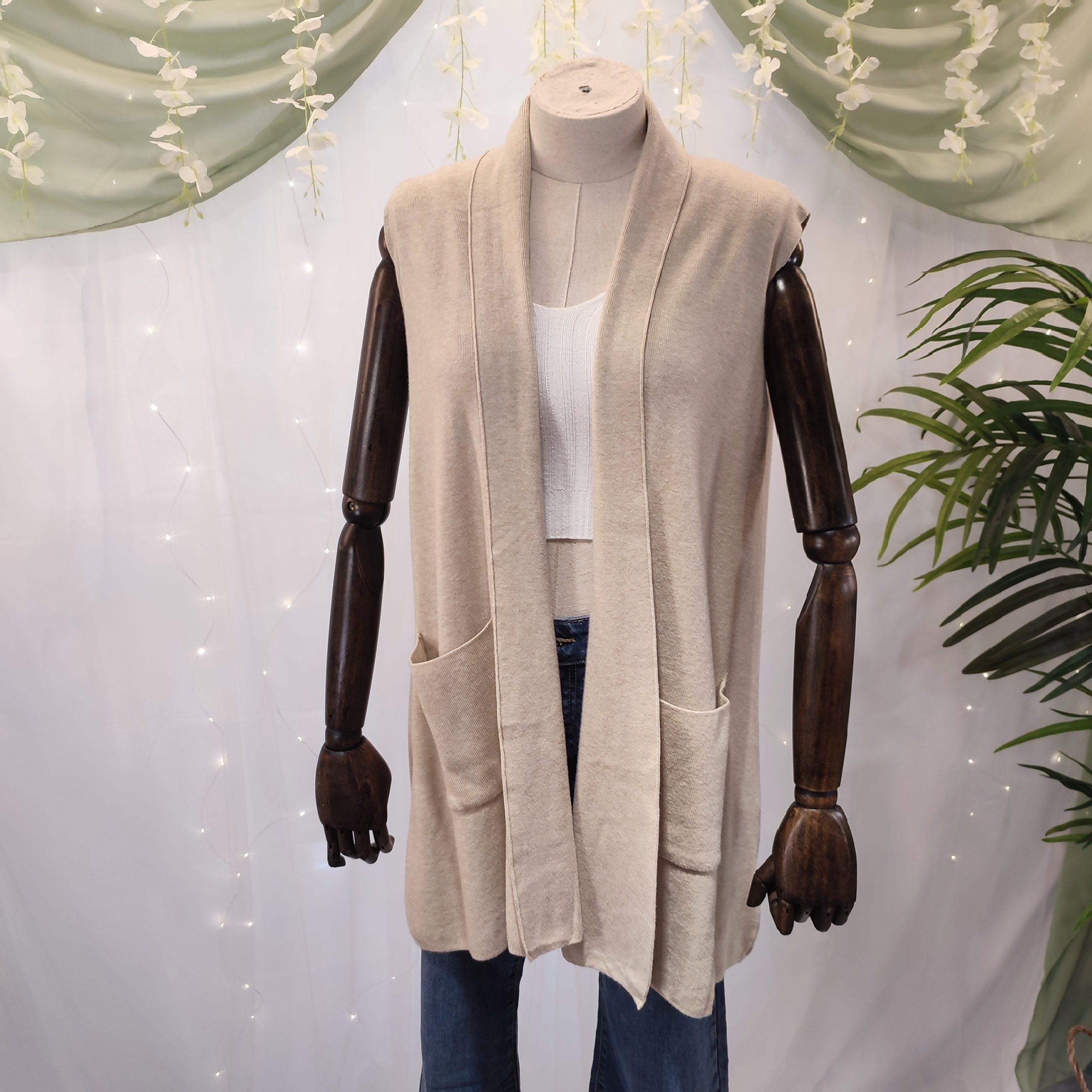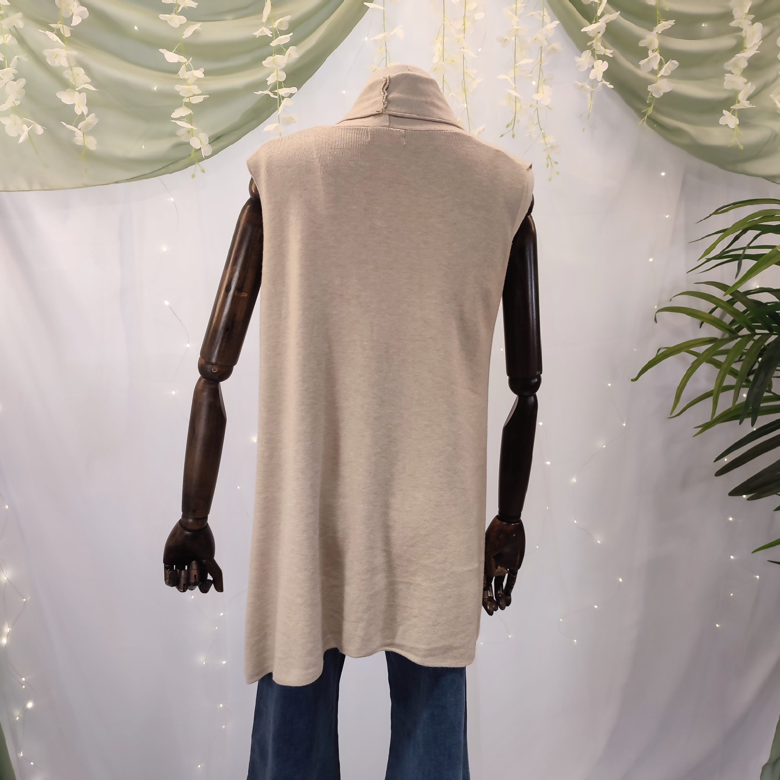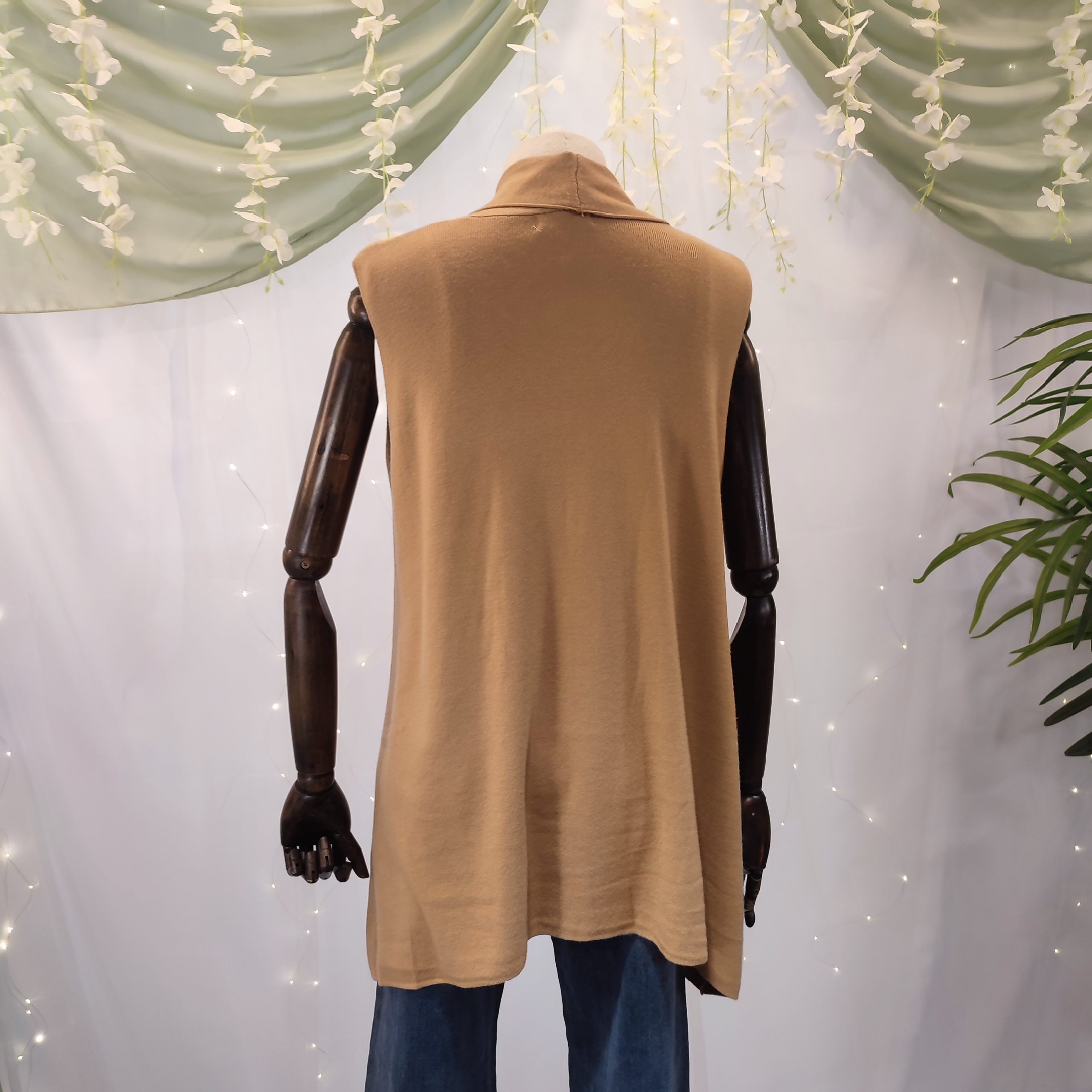 Chaleco largo beige y camel de entretiempo elegante - Es Petit Cantó