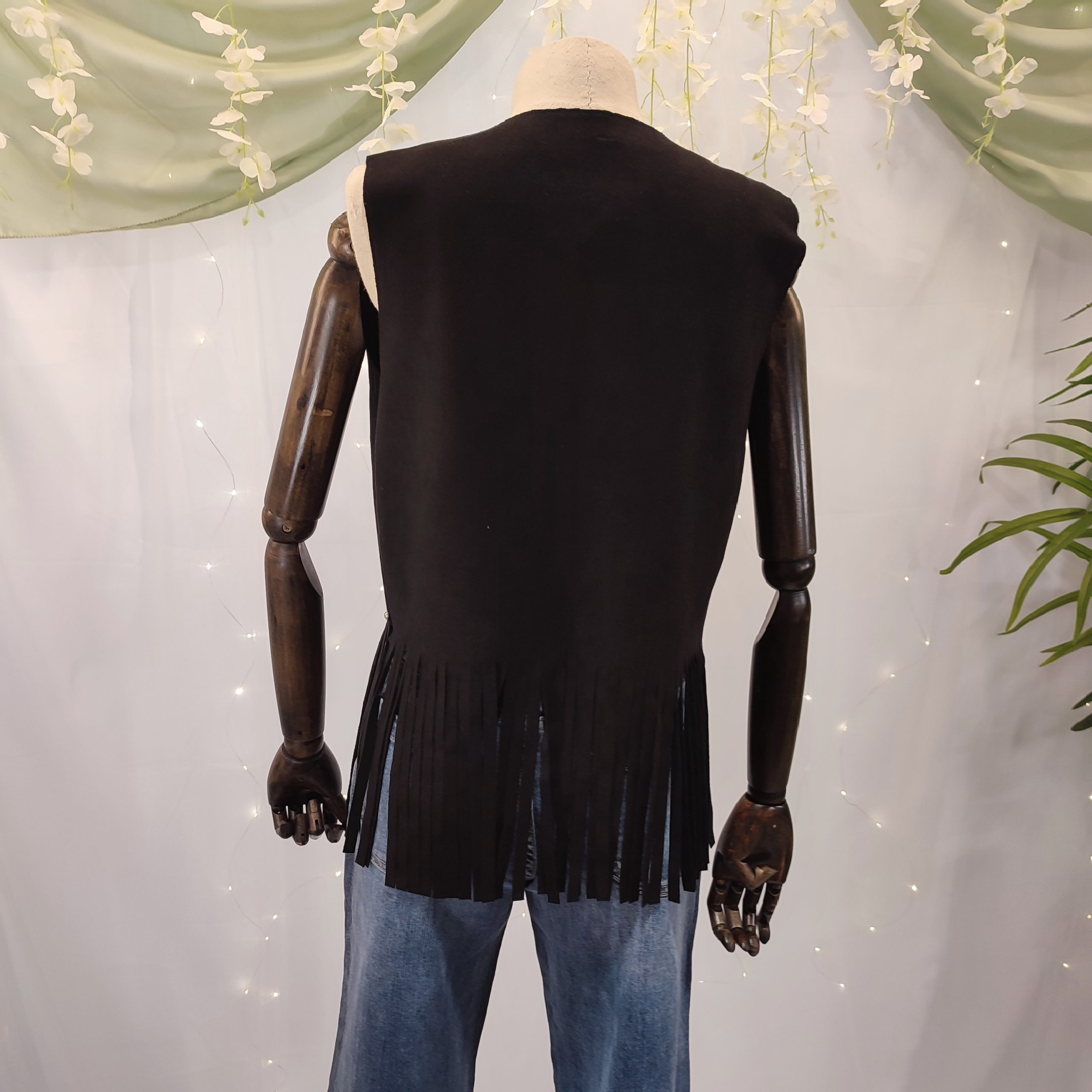 Ideal para combinar con jeans, botas camperas o incluso vestidos de corte sencillo, este chaleco es perfecto para festivales, salidas informales o simplemente para añadir un toque western chic a tu día a día.