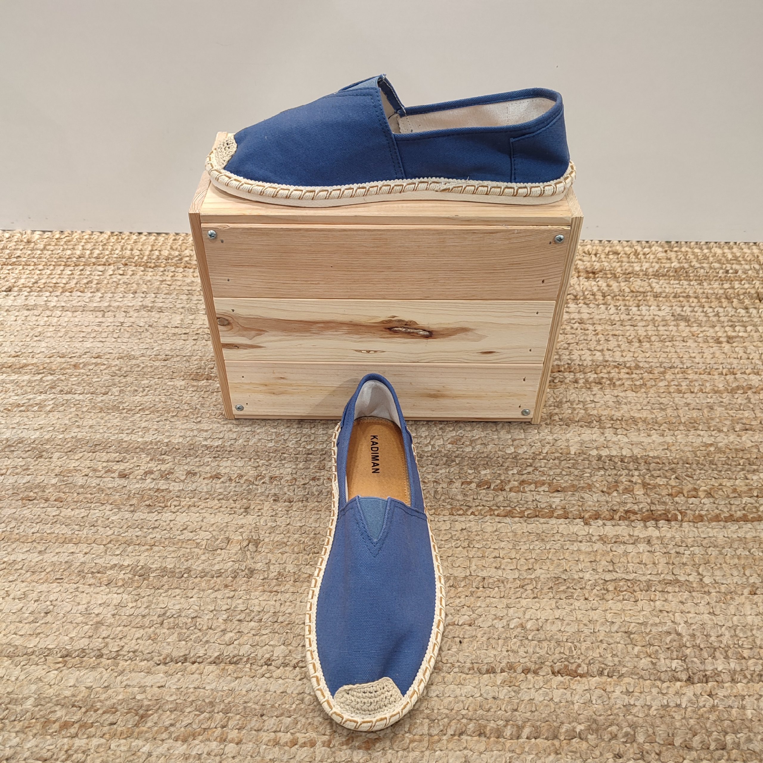 Espardeña de tela clásica para hombre. Contiene una suela plana de goma recubierta por un borde de cordón, esto le da una elegancia y a la vez sencillez al calzado. Disponible en dos colores. Por un lado, una opción más atrevida como es el azul eléctrico para romper aquellos estilos más tradicionales. Por otro lado, una tonalidad mucho más clara, en beige, especial para los outfits más ibicencos del verano, algo muy común en las islas baleares.