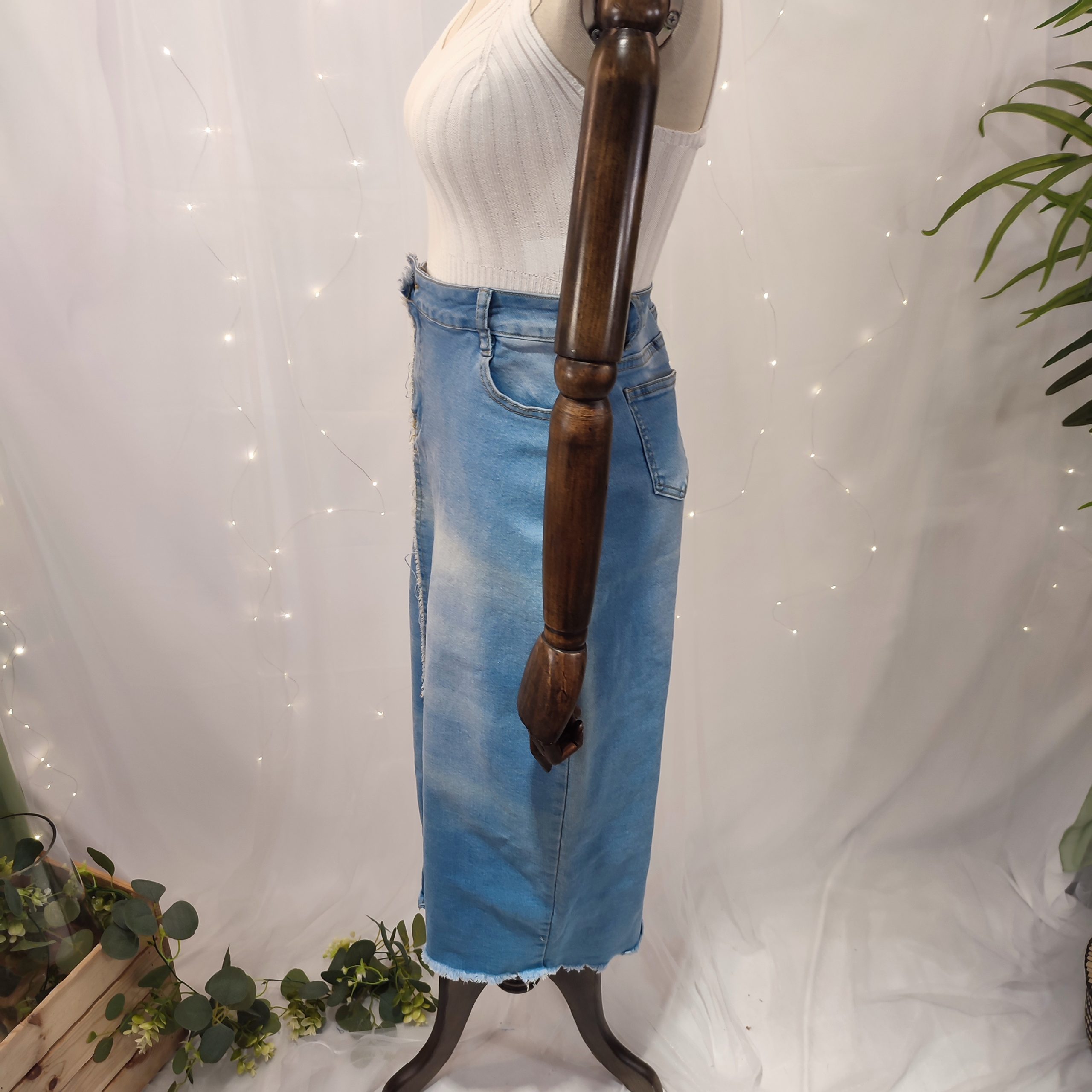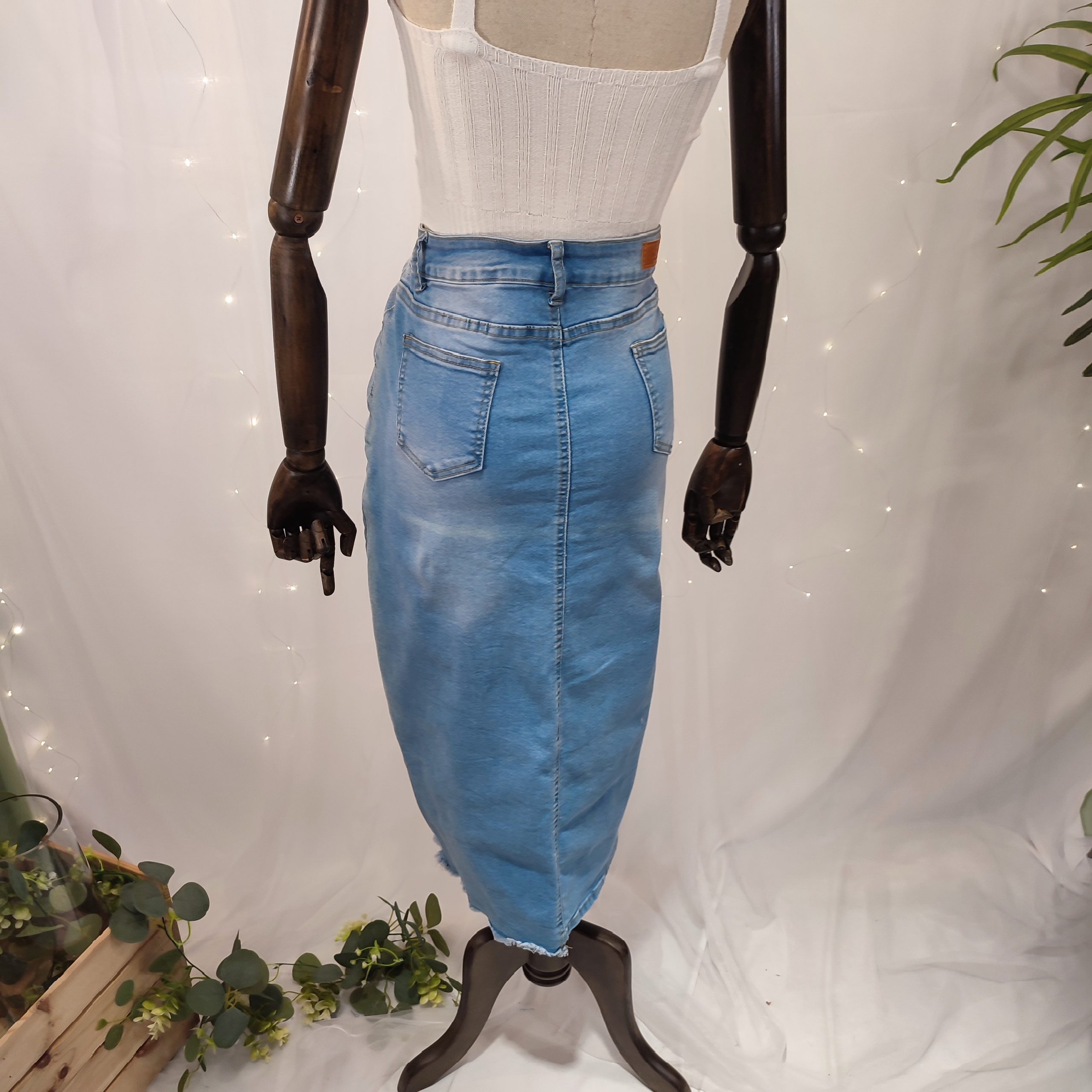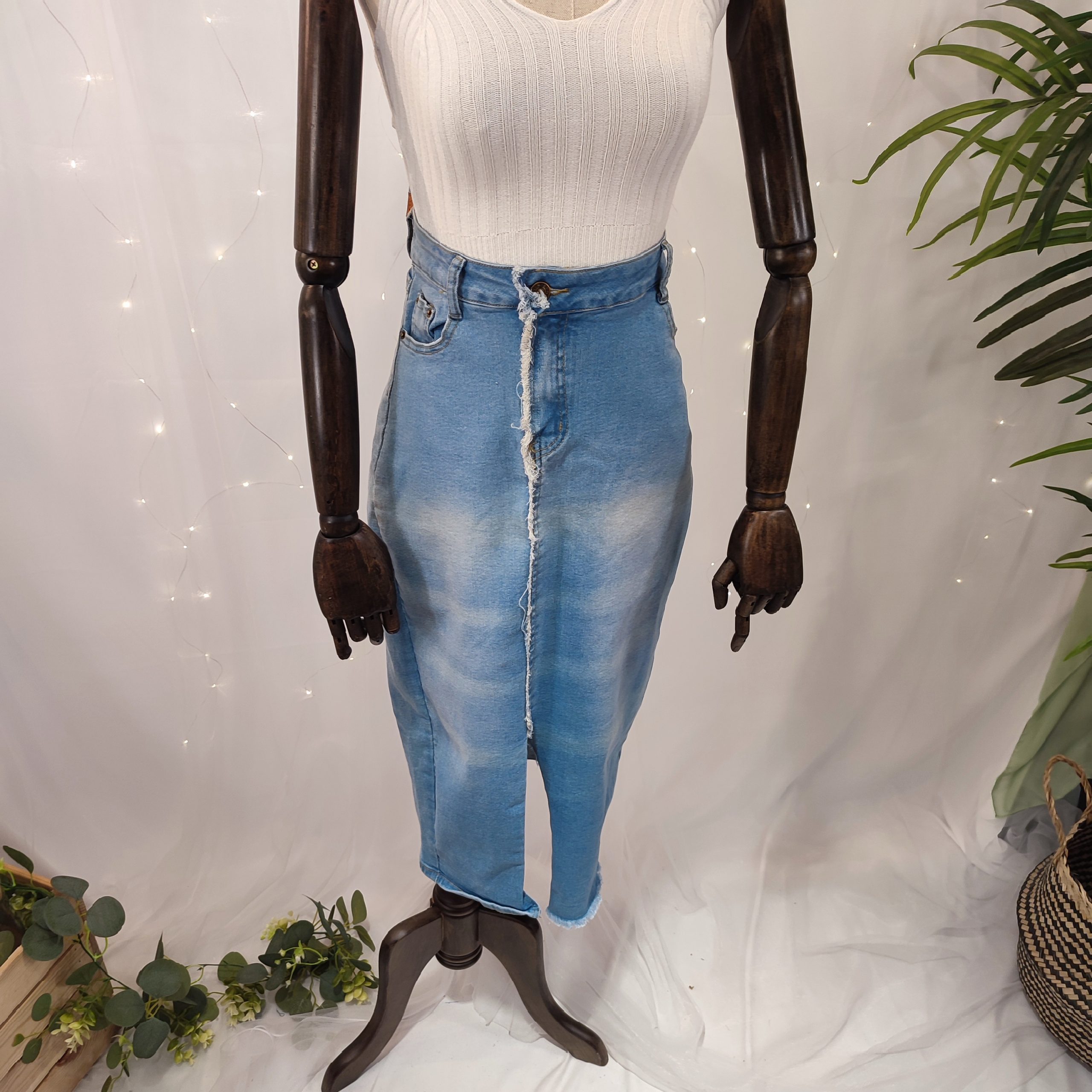 Elegante, versátil y con un aire casual, esta falda vaquera de tubo para mujer es una prenda atemporal que no puede faltar en tu armario. De color azul claro, un tono suave y favorecedor perfecto para la primavera y el verano, esta falda ofrece un equilibrio ideal entre comodidad y estilo.