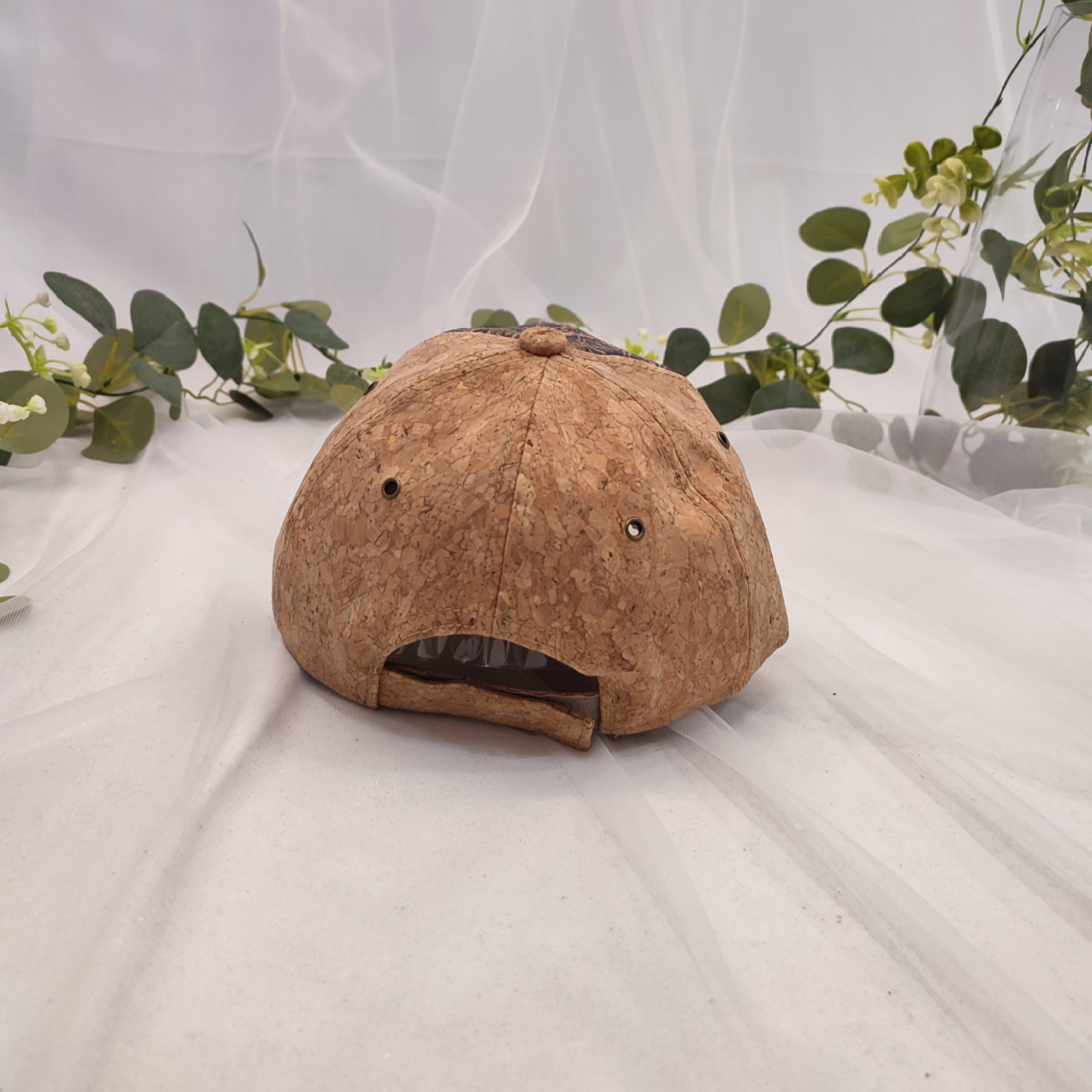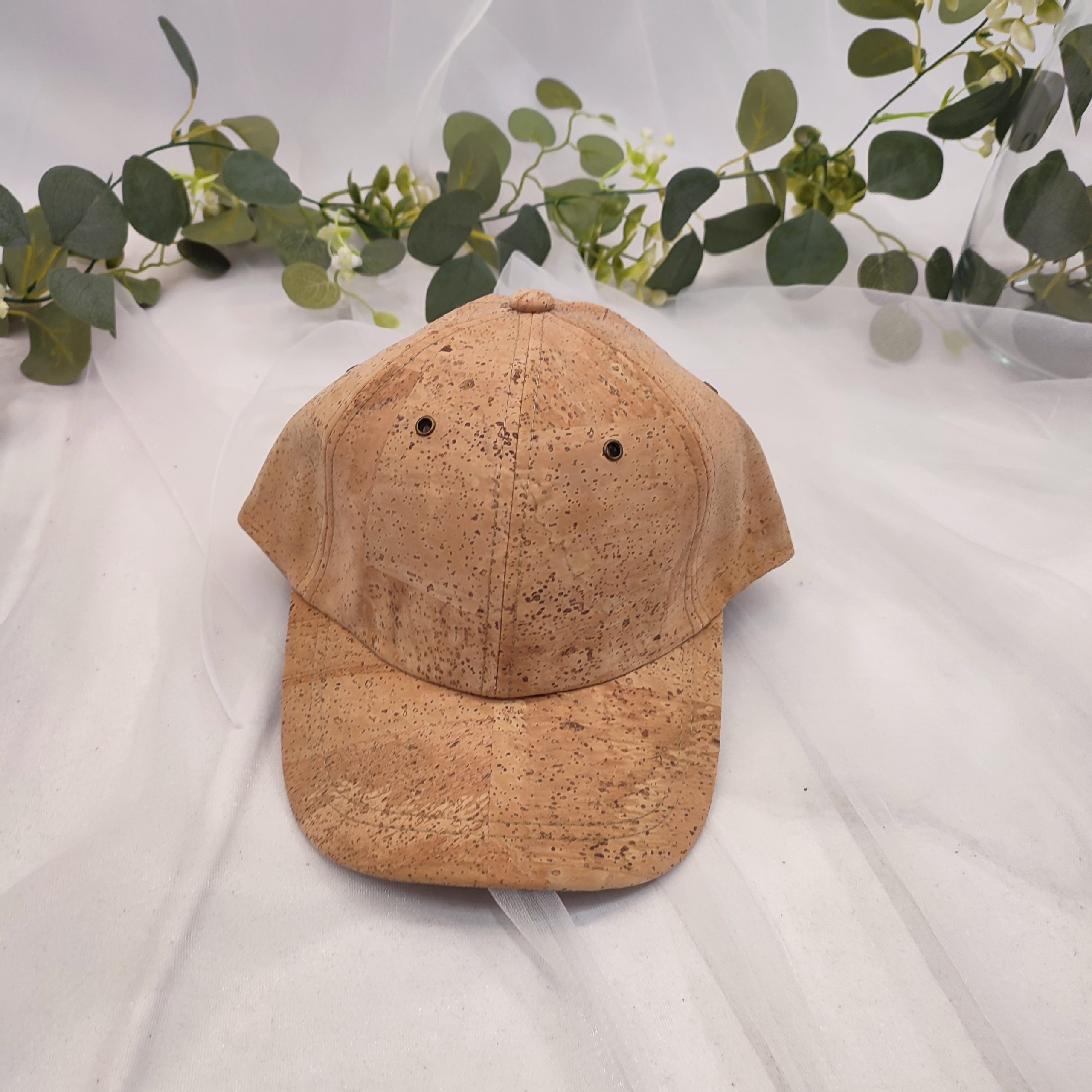 Sencillez consciente. Esta gorra ecológica y minimalista está elaborada íntegramente con corcho natural de alcornoque, recolectado de forma responsable en la zona oeste de la península ibérica, donde los alcornoques forman parte esencial del paisaje y la cultura local.