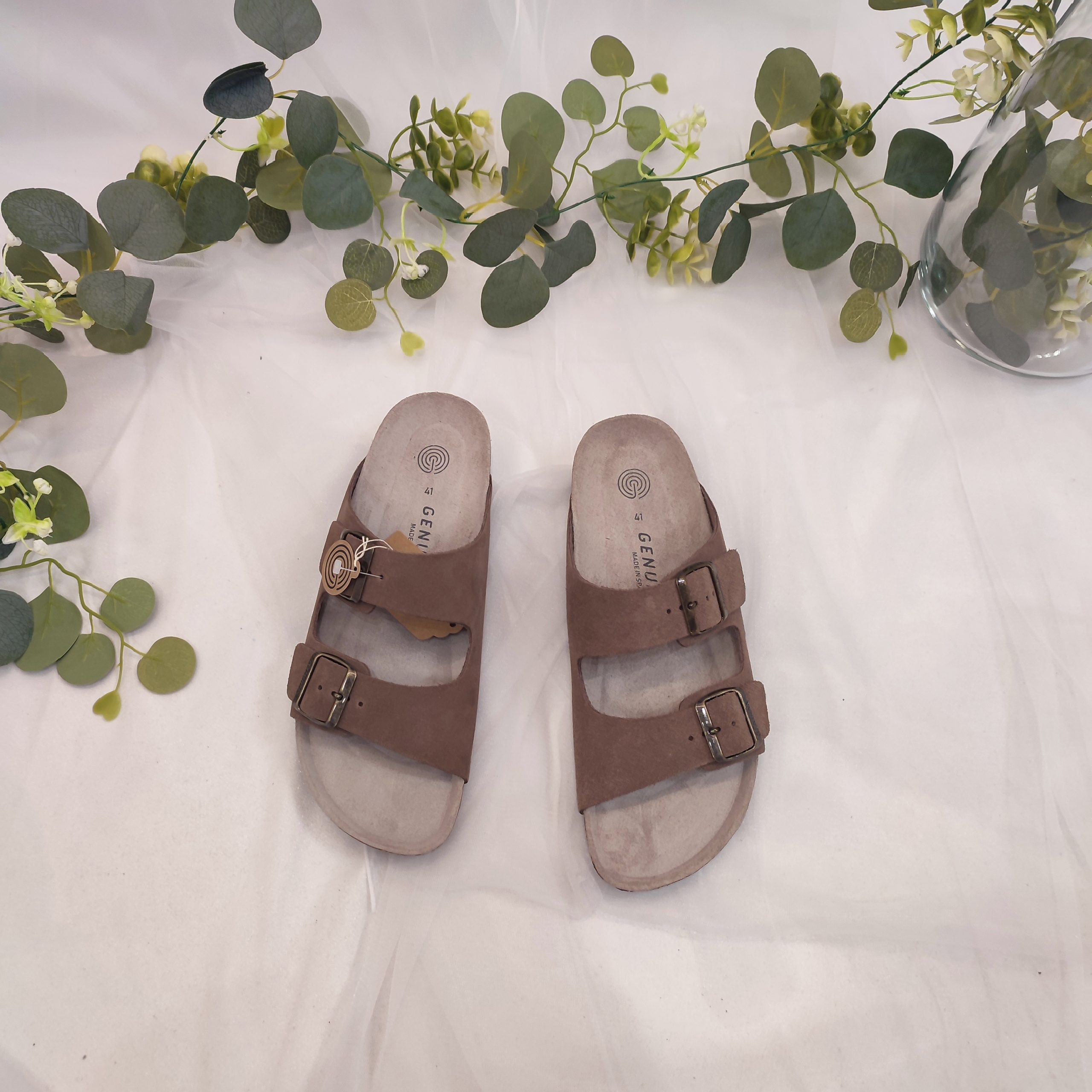 Corte: Piel, Planta: Corcho y foam, Suela: EVA