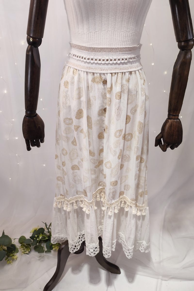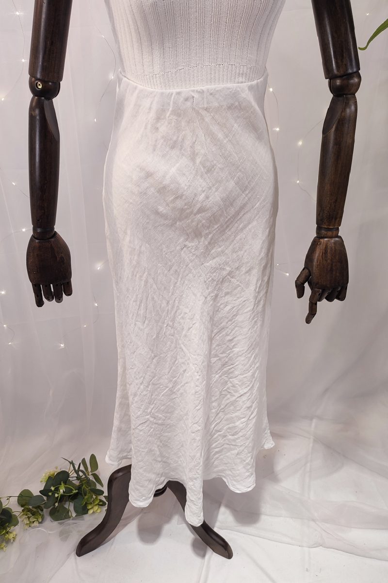Gracias a su corte con pequeño vuelo, esta falda consigue una forma muy femenina y favorecedora, aportando movimiento y evitando el efecto plano de muchas faldas rectas. El vuelo sutil le da un toque coqueto y juvenil, manteniendo un aire sofisticado que la hace perfecta tanto para el día como para la noche.