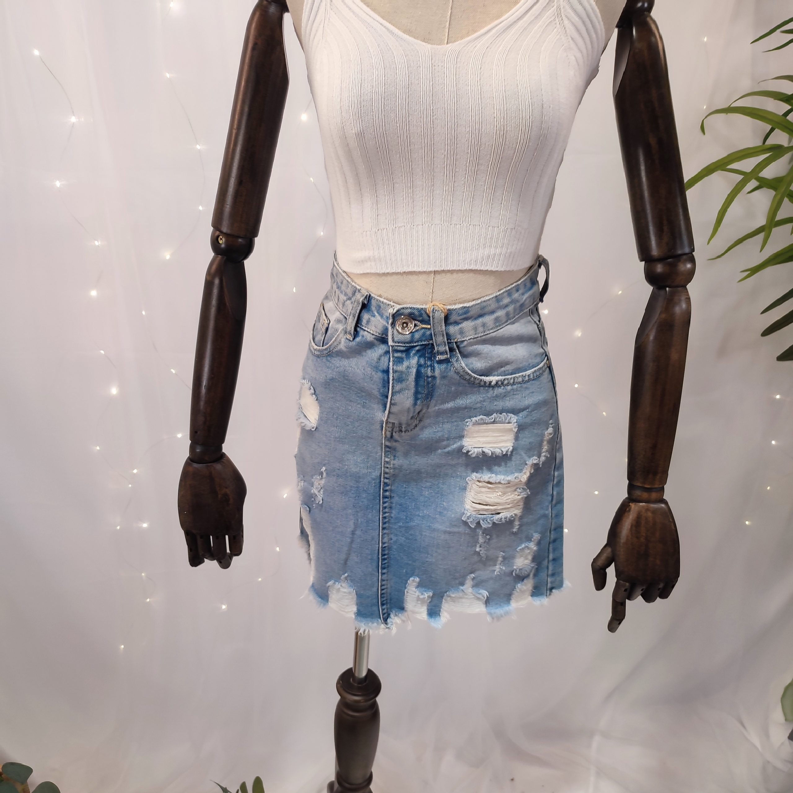 Dale a tus looks un toque desenfadado y con mucha personalidad con esta mini falda vaquera para mujer, diseñada con una estética rota y urbana que nunca pasa de moda. Confeccionada en denim de calidad y cuidando cada detalle, esta falda es perfecta para quienes aman un estilo juvenil, moderno y con actitud.