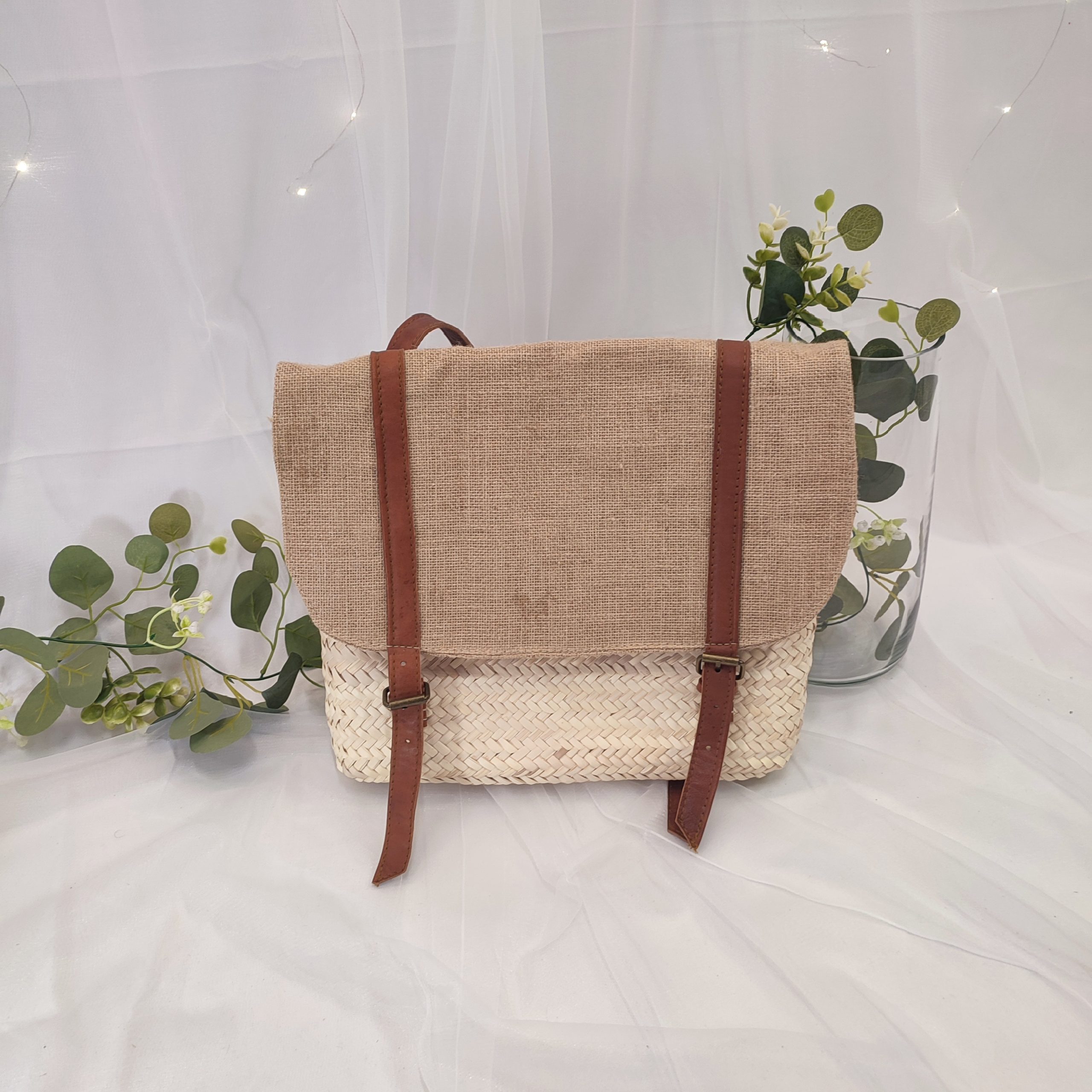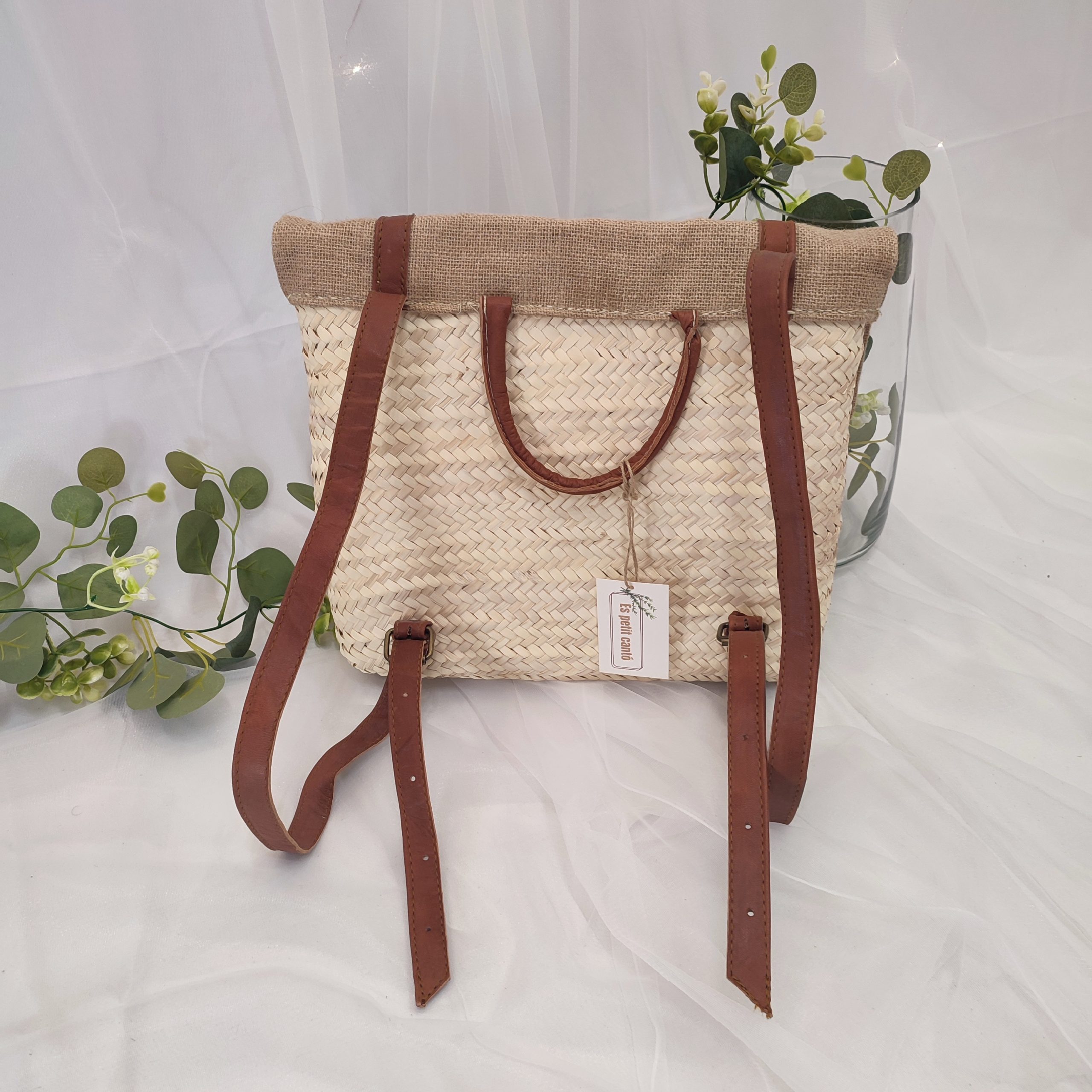 Descubre nuestra mochila hecha a mano con mimbre, una pieza única y artesanal que combina estilo y funcionalidad. Con un diseño delicado y elegante, esta mochila destaca por su solapa de tela de ratán, que aporta un toque natural y sofisticado a la prenda. Sus asas, de cuero suave y ajustables, aseguran comodidad y versatilidad al llevarla. Lo más innovador de este diseño es que las asas continúan a lo largo de la solapa de ratán, transformándose en un mecanismo de cierre hermético con dos hebillas tipo cinturón, lo que garantiza seguridad y protección para tus pertenencias. Ideal para quienes buscan un accesorio exclusivo, duradero y lleno de carácter. ¡Nuestros típicos capazos que caracterizan tanto a la isla pero con forma de mochila! Contiene las siguientes medidas: 35 cm de ancho y 35 cm de alto.