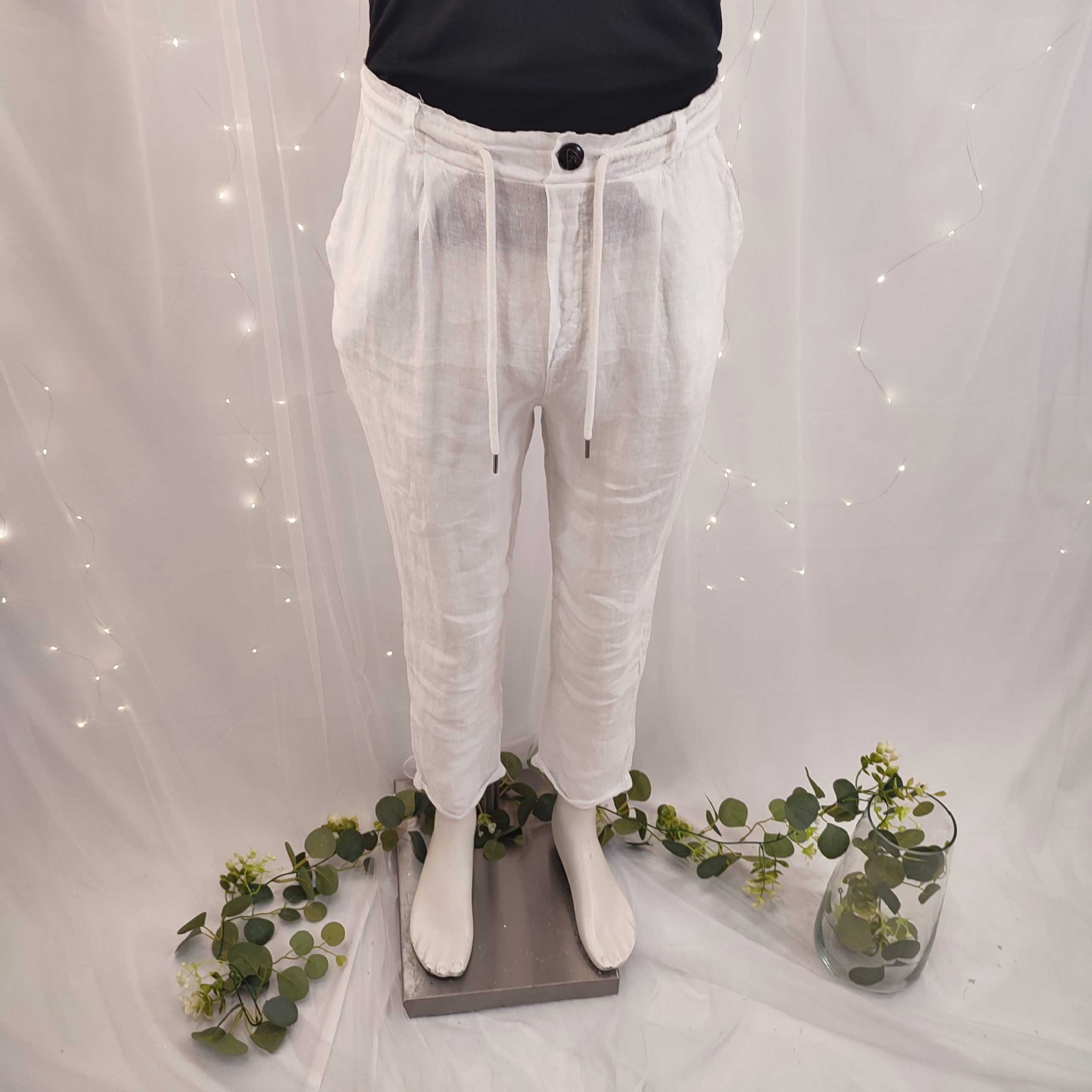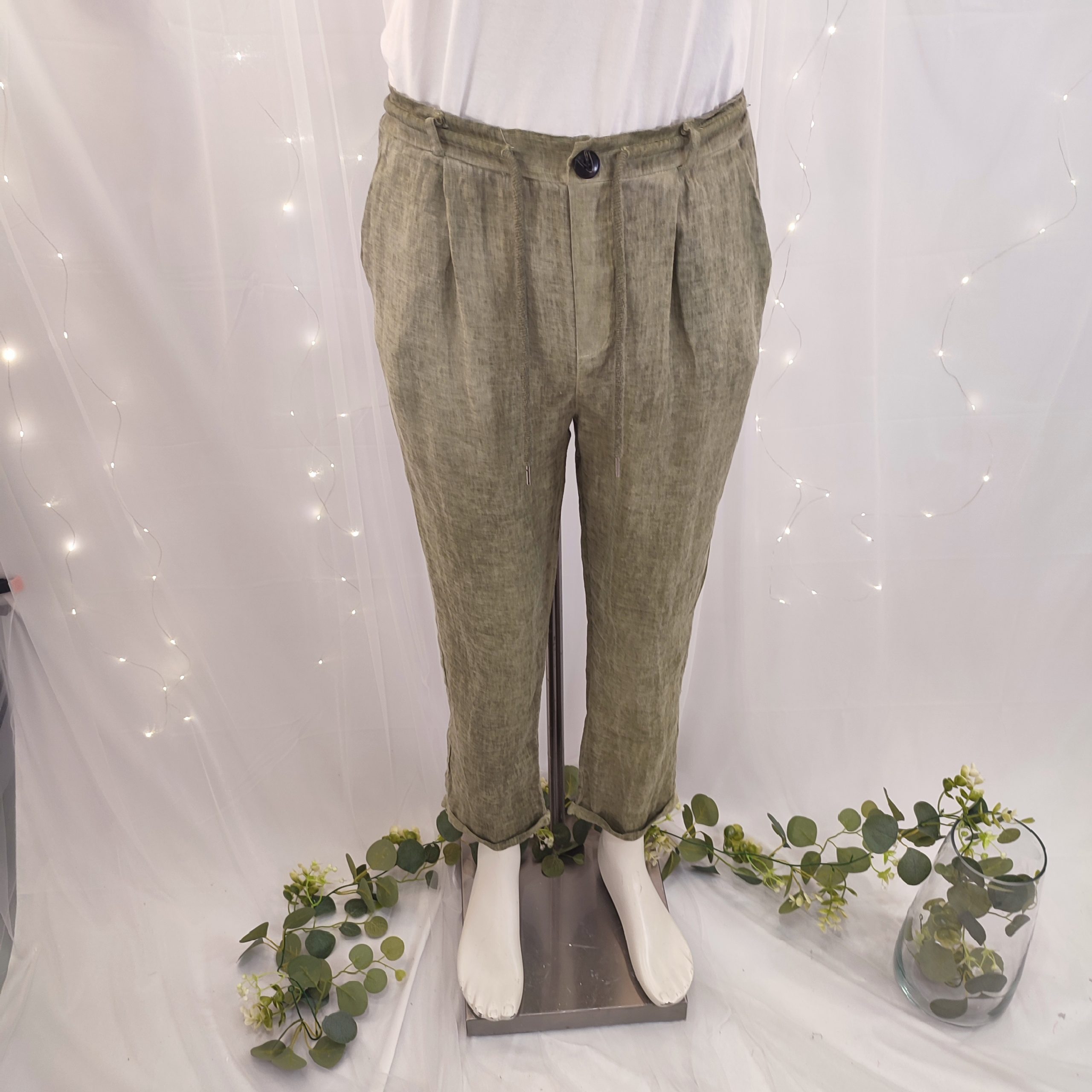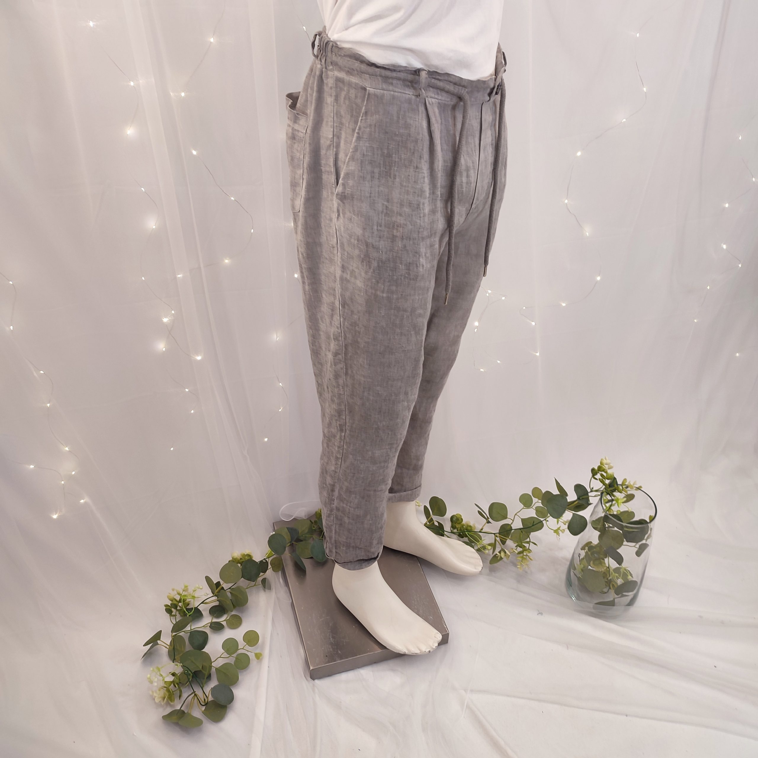 Disfruta del verano con estilo y comodidad gracias a estos pantalones largos de lino para hombre, la prenda ideal para los días más cálidos. Hechos 100% de lino, garantizan una frescura excepcional y una sensación ligera, perfecta para mantenerte cómodo durante todo el día.