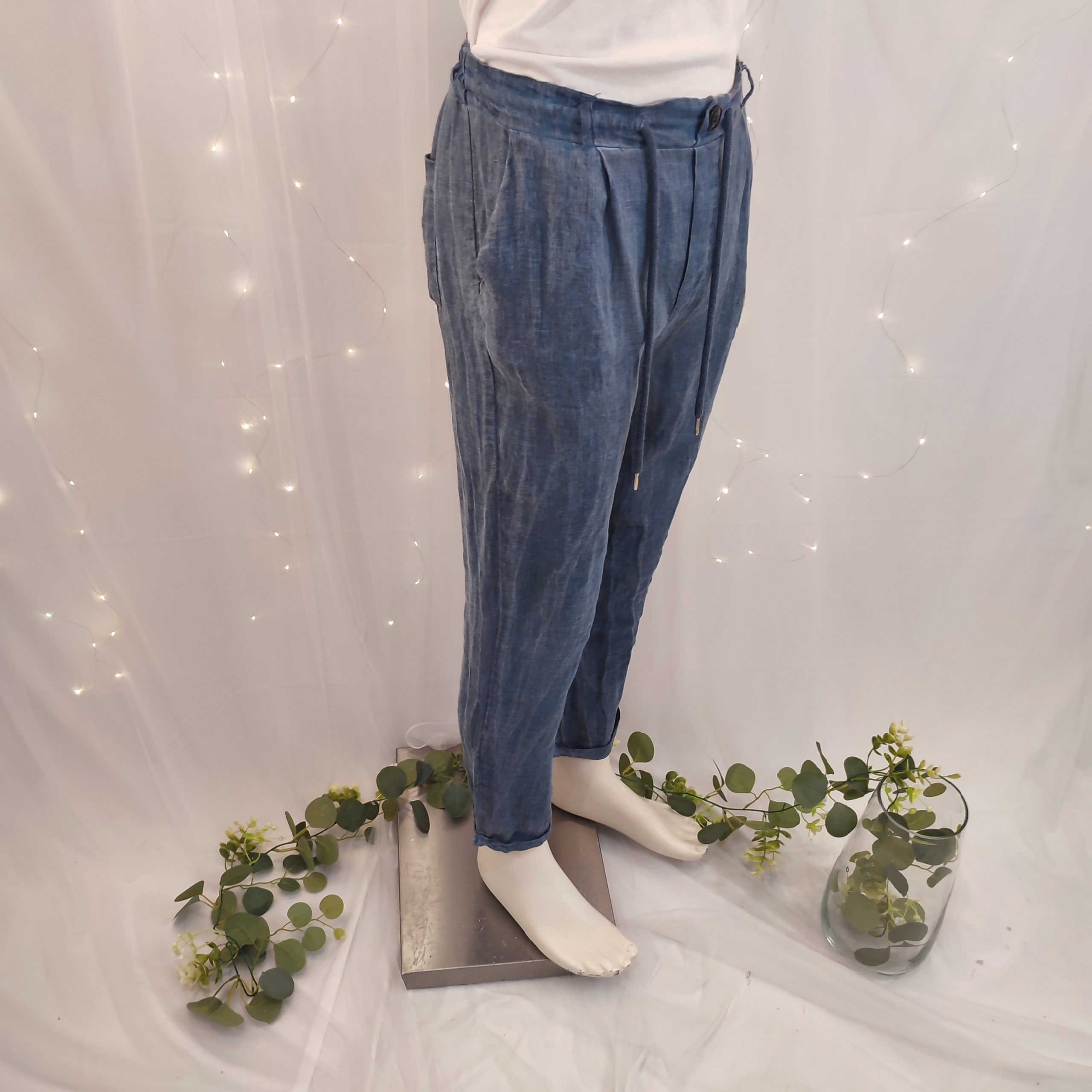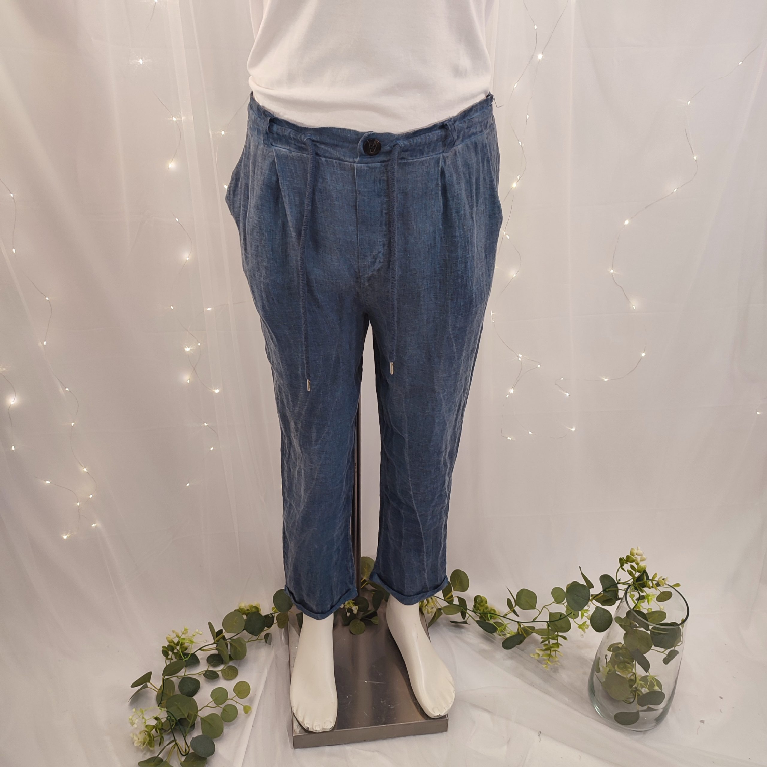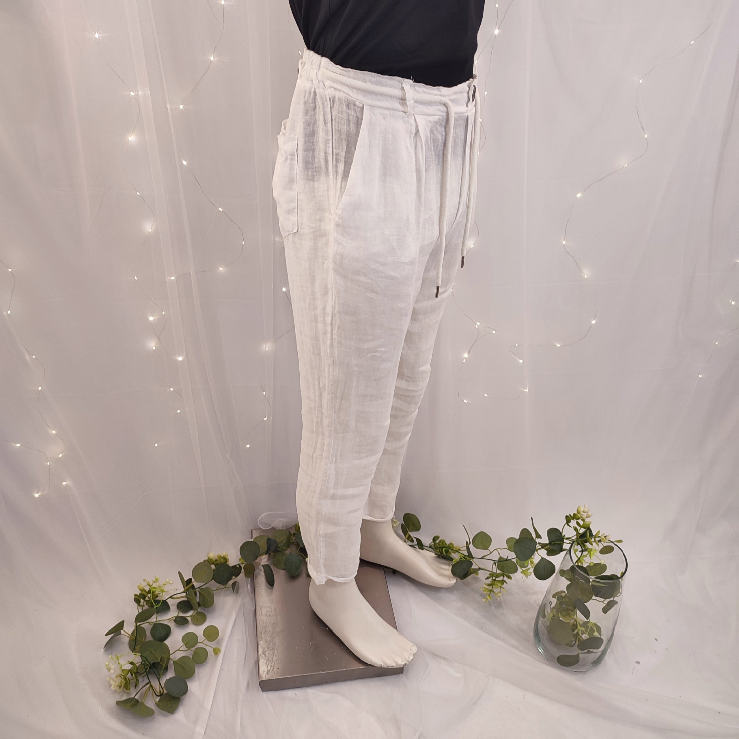 Disfruta del verano con estilo y comodidad gracias a estos pantalones largos de lino para hombre, la prenda ideal para los días más cálidos. Hechos 100% de lino, garantizan una frescura excepcional y una sensación ligera, perfecta para mantenerte cómodo durante todo el día.