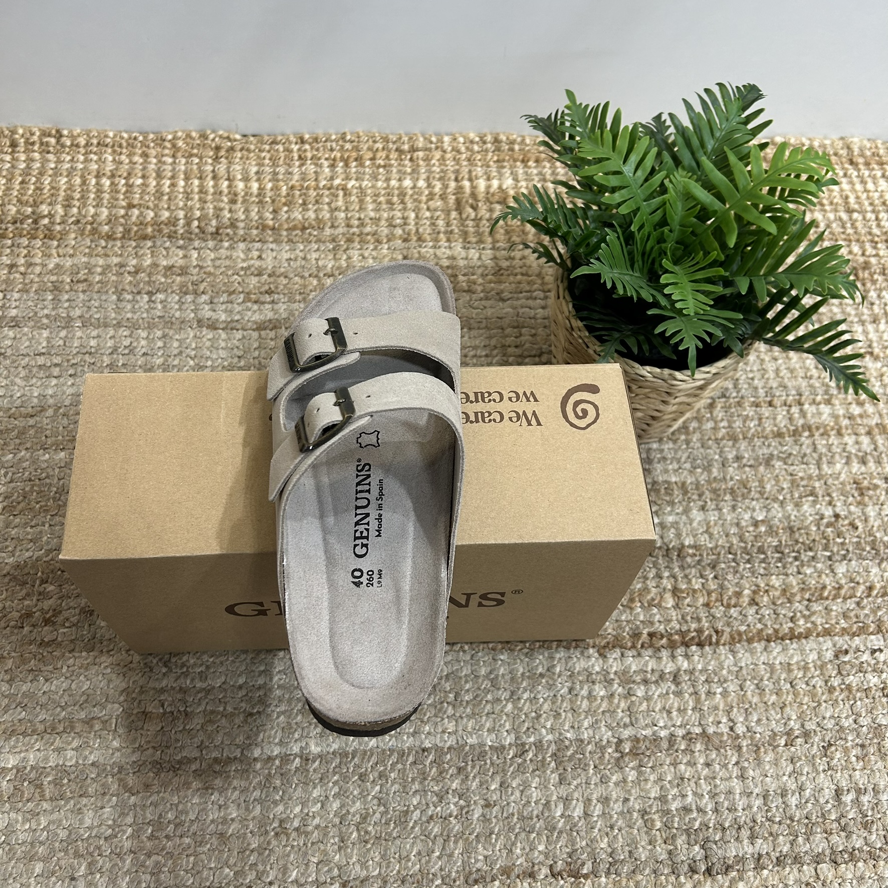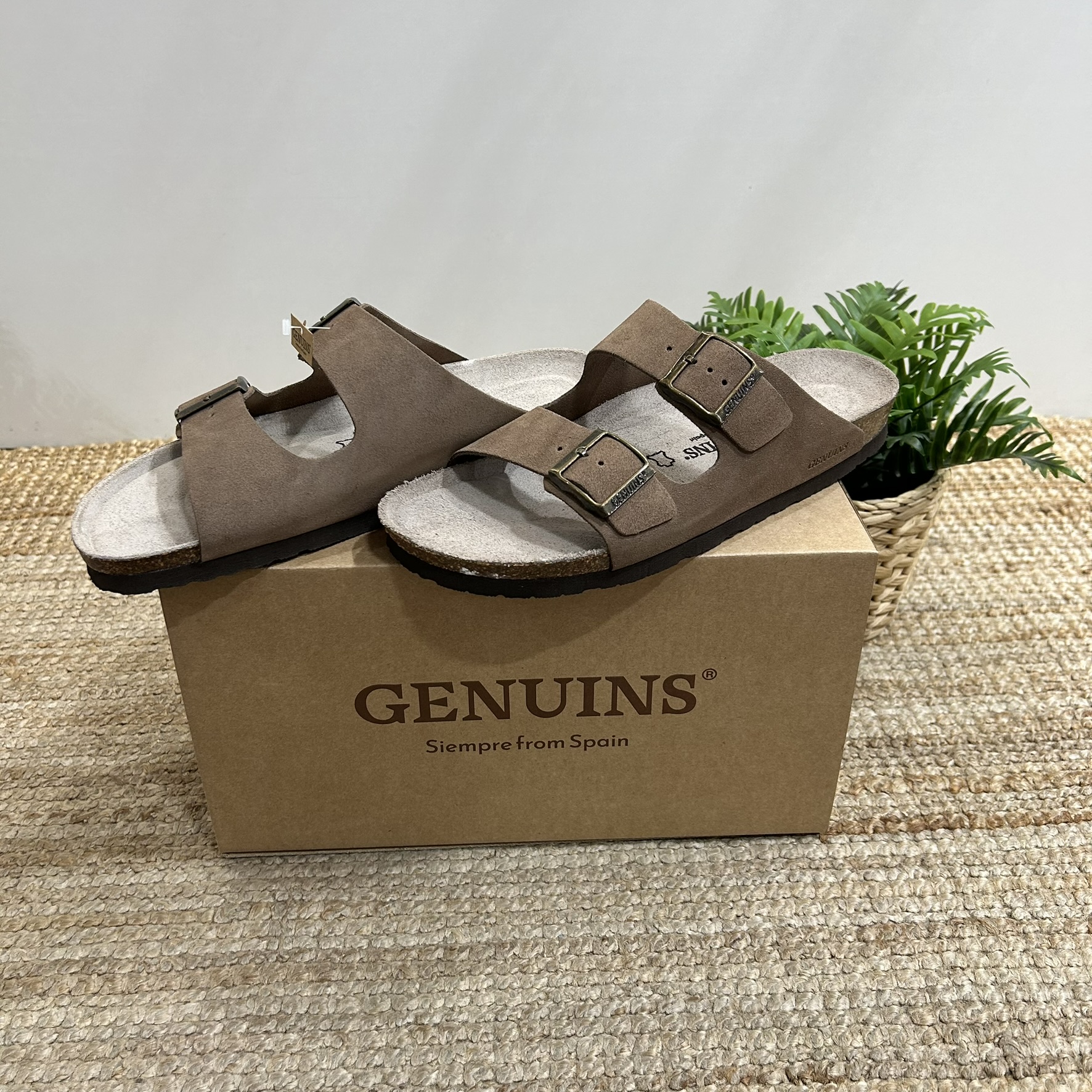 Sandalia marrón de piel serraje con planta anatómica y tiras con hebillas ajustables. Piel certificada por proveedores del Leather Working Group (LWG) con estatus oro. Diseñado y fabricado en fábricas de Elche (España), bajo una producción sostenible y proveedores locales. El corte es de piel, la planta de corcho y foam y en el caso de la suela es de EVA. La plantilla anatómica ofrece soporte, reduce la presión, mejora la alineación y estabilización, disminuye la fatiga y previene lesiones, proporcionando confort y protección al caminar.