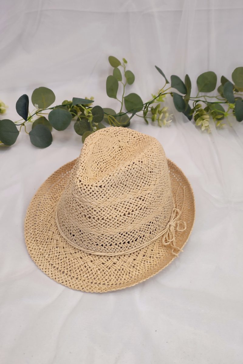 Disponible en tres tonos atemporales —blanco, beige y marrón—, combina fácilmente con una gran variedad de prendas. El diseño se completa con una cinta lisa en color gris alrededor de la copa, un detalle sobrio y elegante que aporta equilibrio visual y un toque distintivo sin recargar el conjunto.