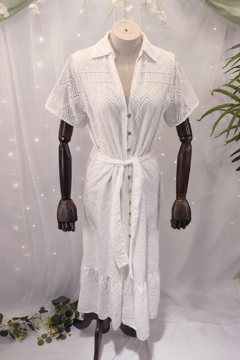 La espalda descubierta añade un toque sensual y veraniego, mientras que el cordón a modo de cinturón en la cintura, del mismo tejido, te permite ajustarlo a tu figura o llevarlo suelto para un look más informal. Aunque el vestido tiene un corte holgado, su caída fluida se adapta de forma visual al cuerpo, logrando una silueta estilizada sin perder comodidad.