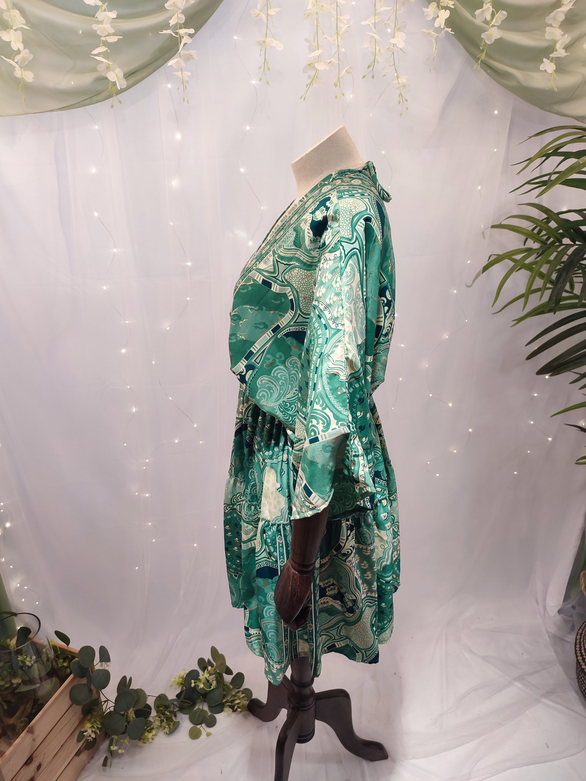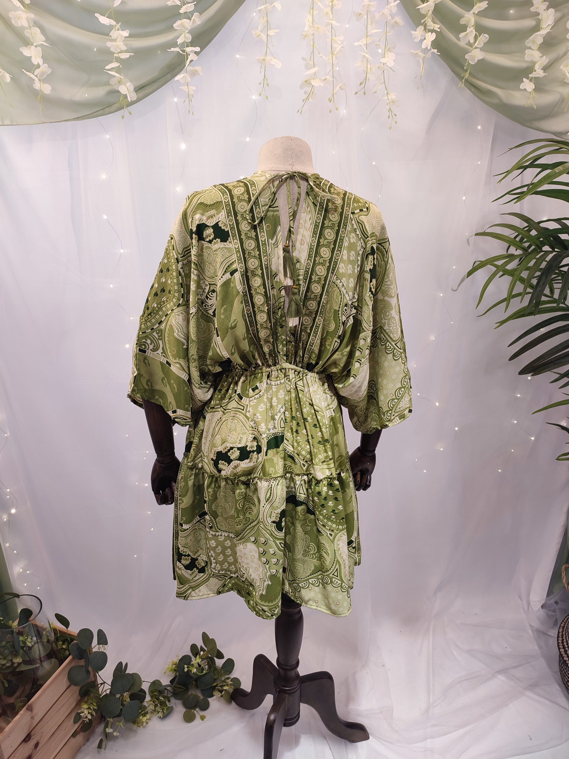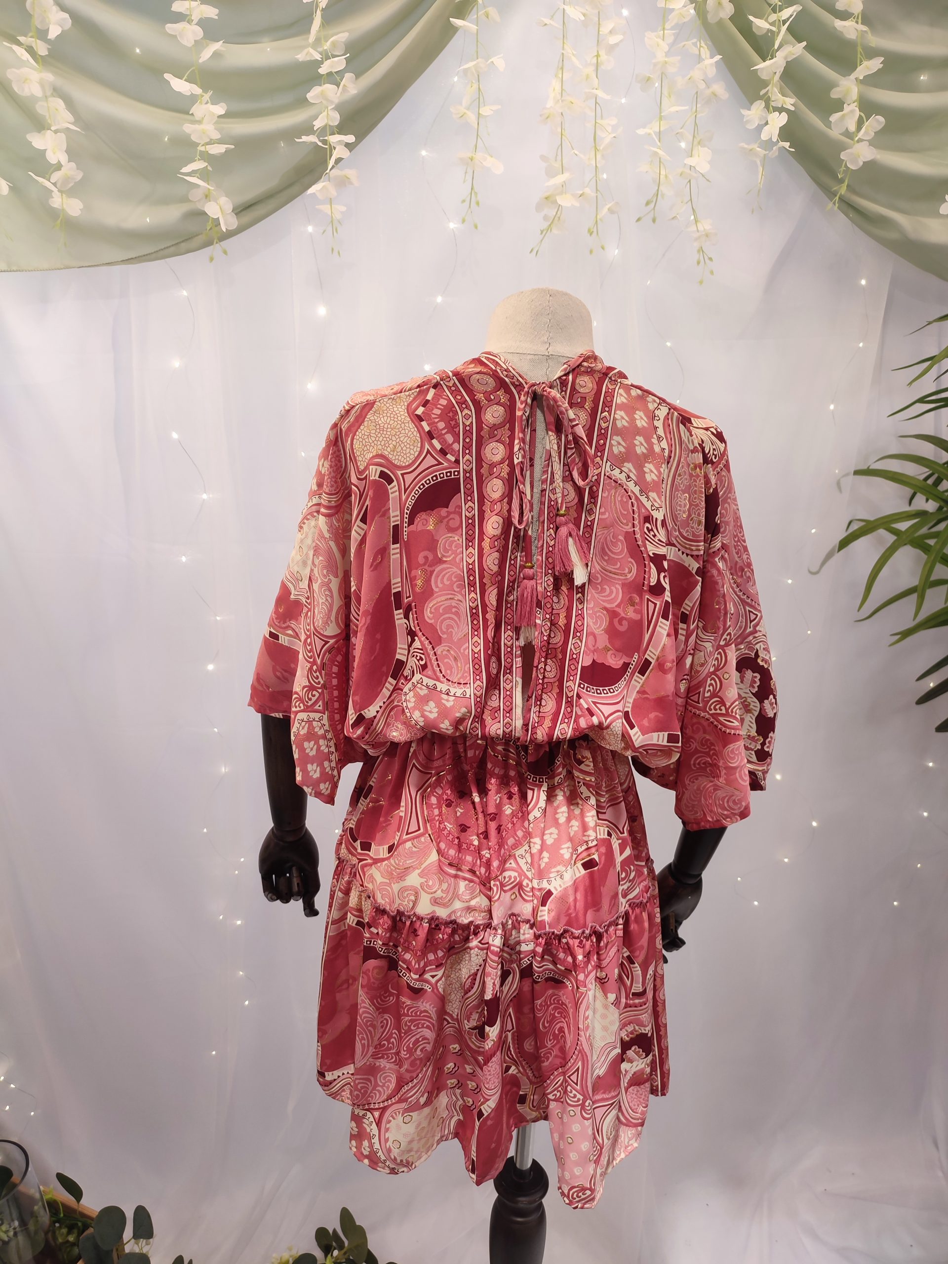 Lo que realmente hace especial a este vestido es su estampado étnico indio, una mezcla exquisita entre tradición y modernidad. Cada diseño celebra la riqueza cultural del textil hindú, llevándolo al terreno contemporáneo con un estilo boho-chic perfecto para esta temporada.