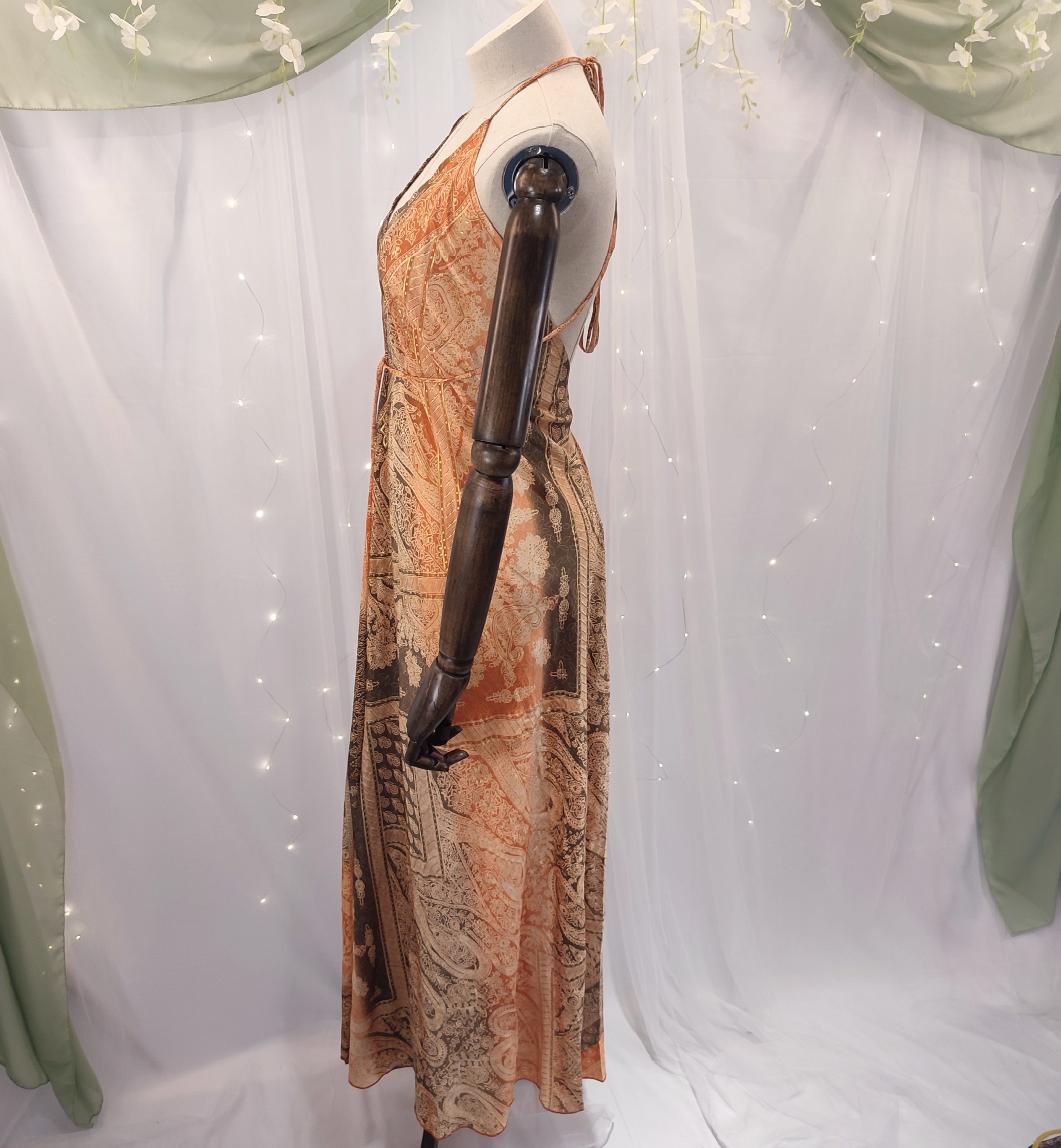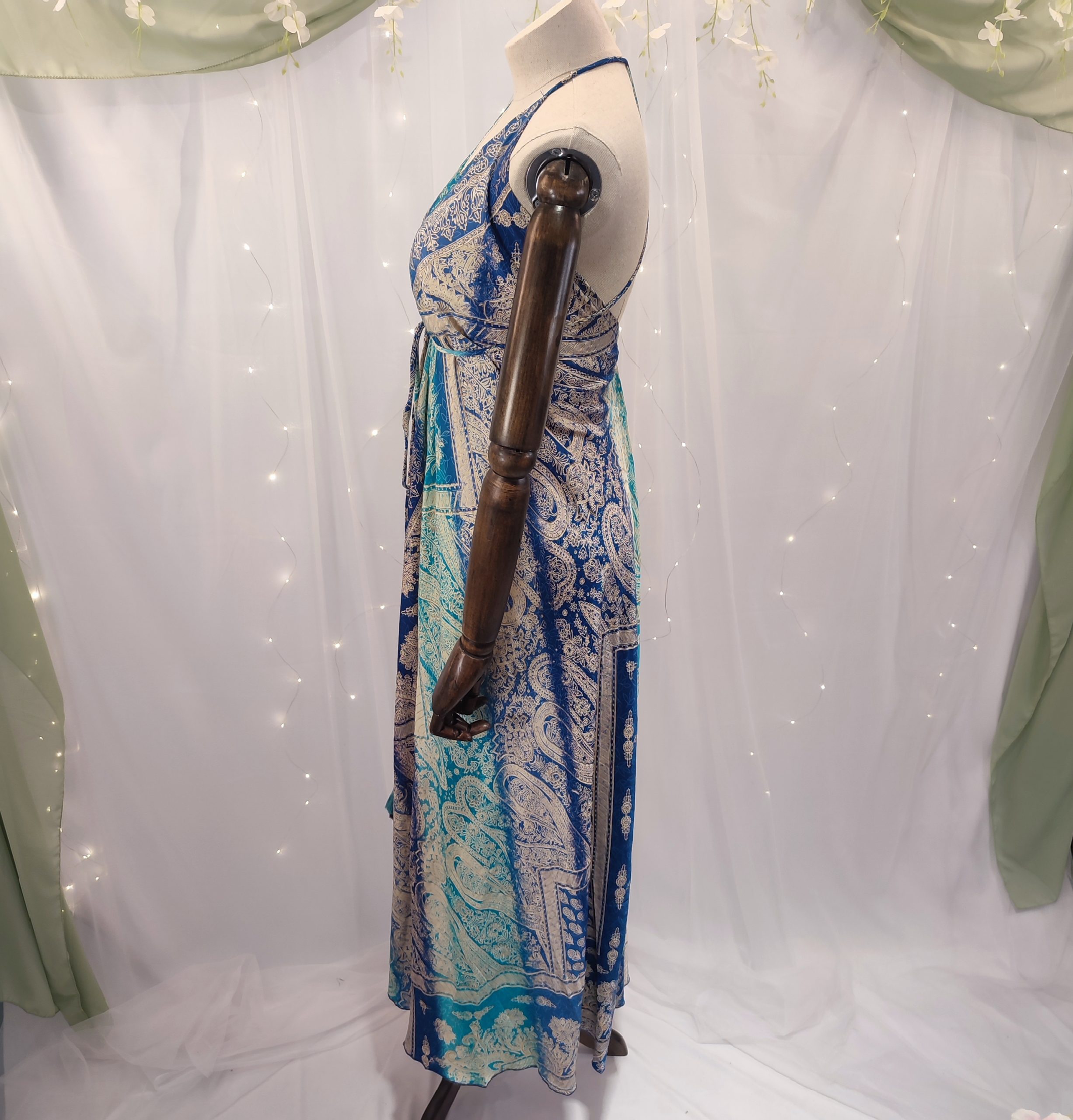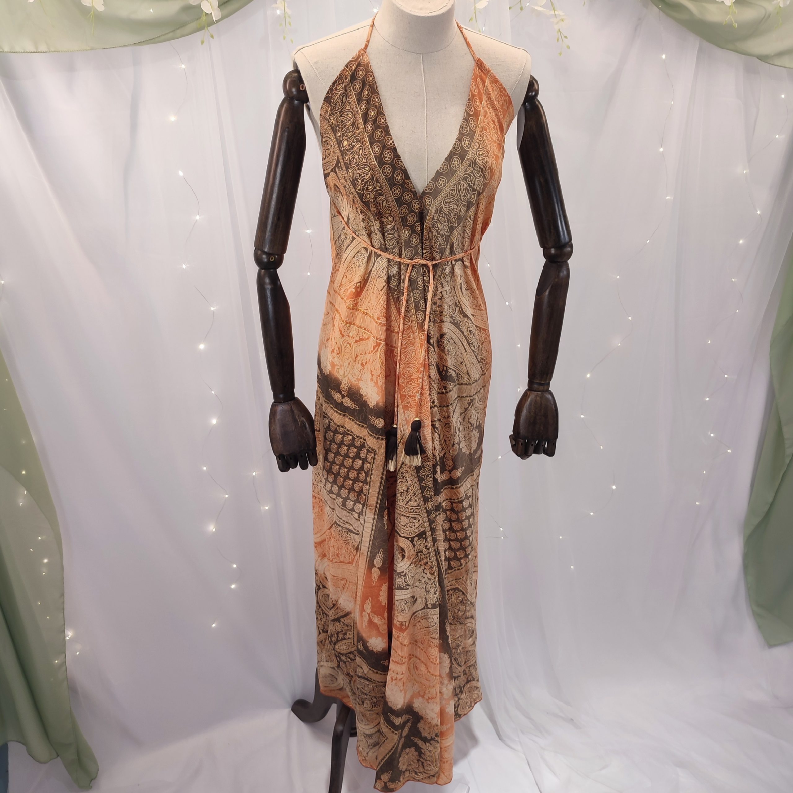 Descubre la fusión perfecta entre tradición exótica y sofisticación contemporánea con este vestido largo de inspiración boho, adornado con un delicado estampado étnico importado directamente desde la India. Una prenda que encarna la esencia de lo artesanal con un diseño moderno y sensual, pensada para mujeres que buscan destacar con elegancia sin renunciar al confort.