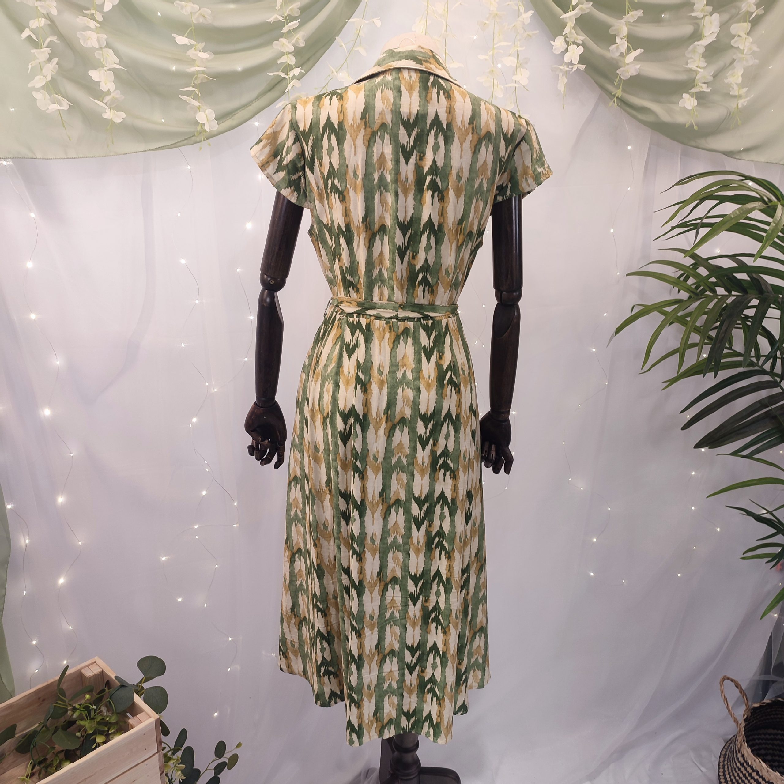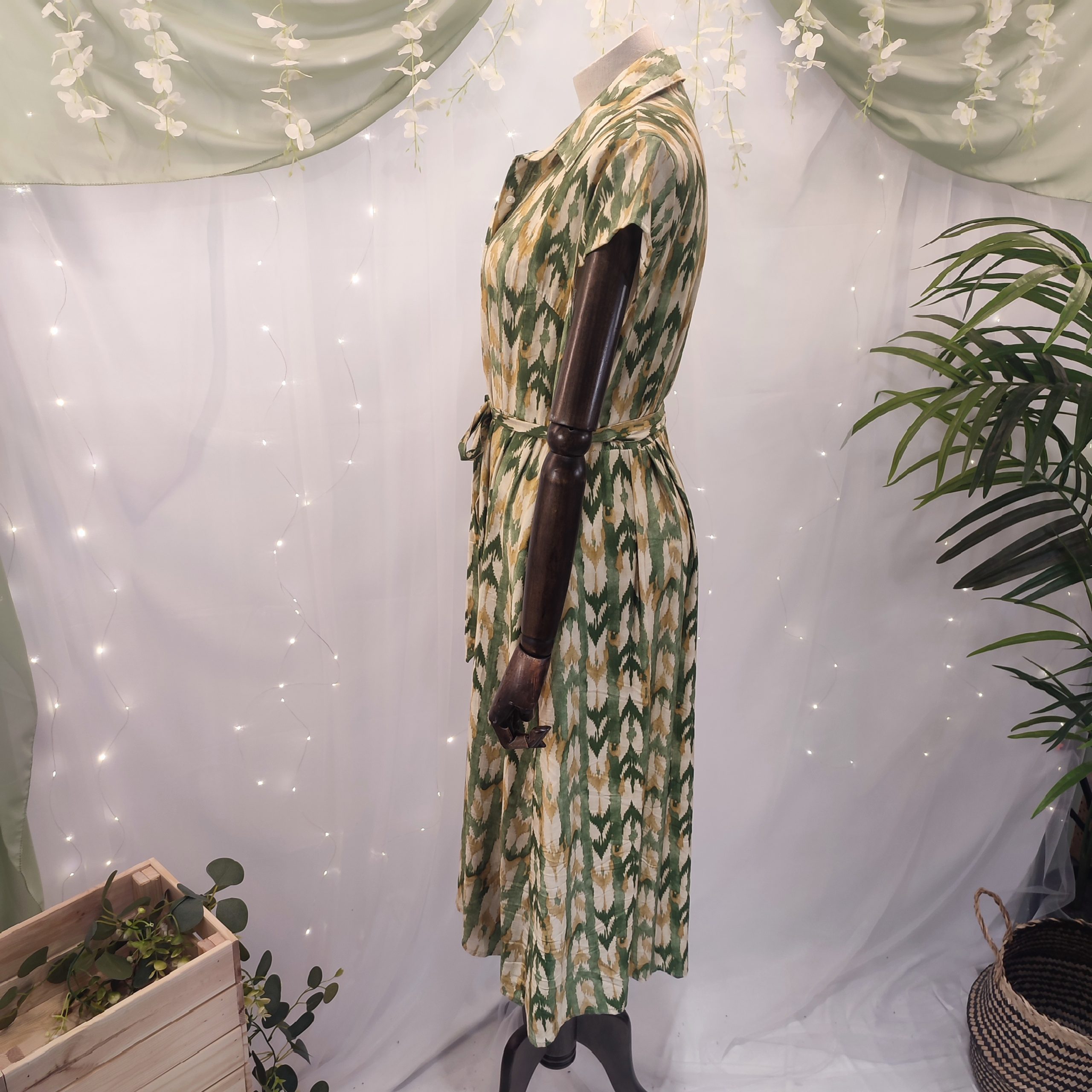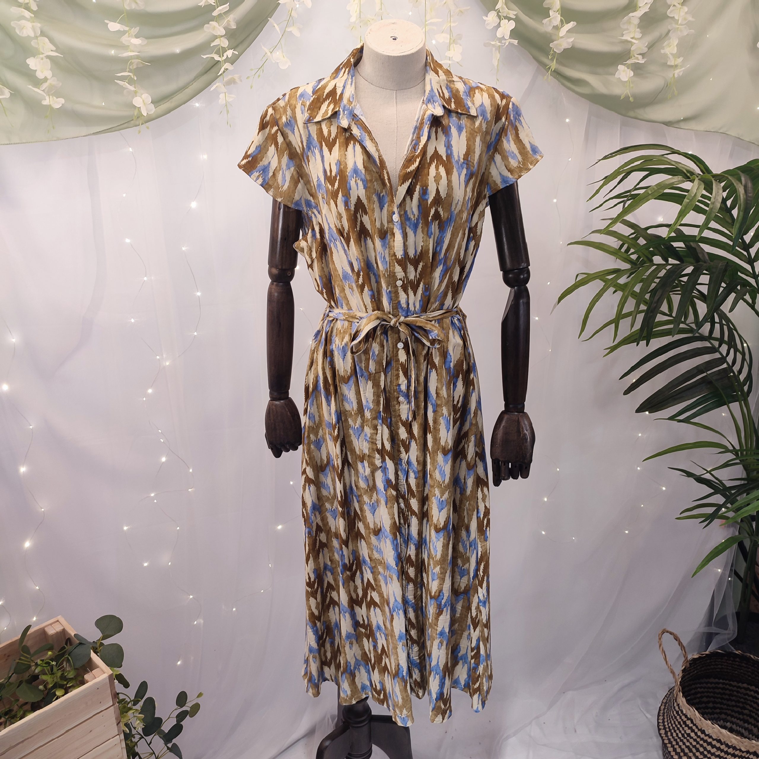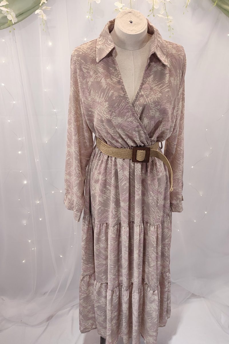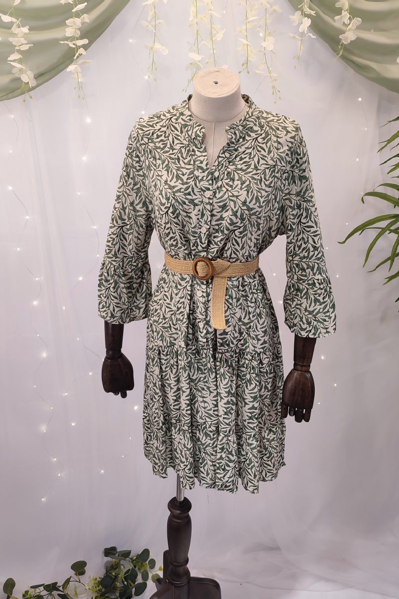 Este vestido largo para mujer es mucho más que una prenda: es una declaración de estilo con raíces. Diseñado con un cuello italiano tipo camisa y una abertura frontal completa, combina elegancia clásica con un toque moderno y desenfadado. Su silueta fluida se ajusta sutilmente a la figura gracias a un cinturón de cuerda a juego, confeccionado con el mismo tejido y estampado del vestido, que marca la cintura de forma favorecedora.