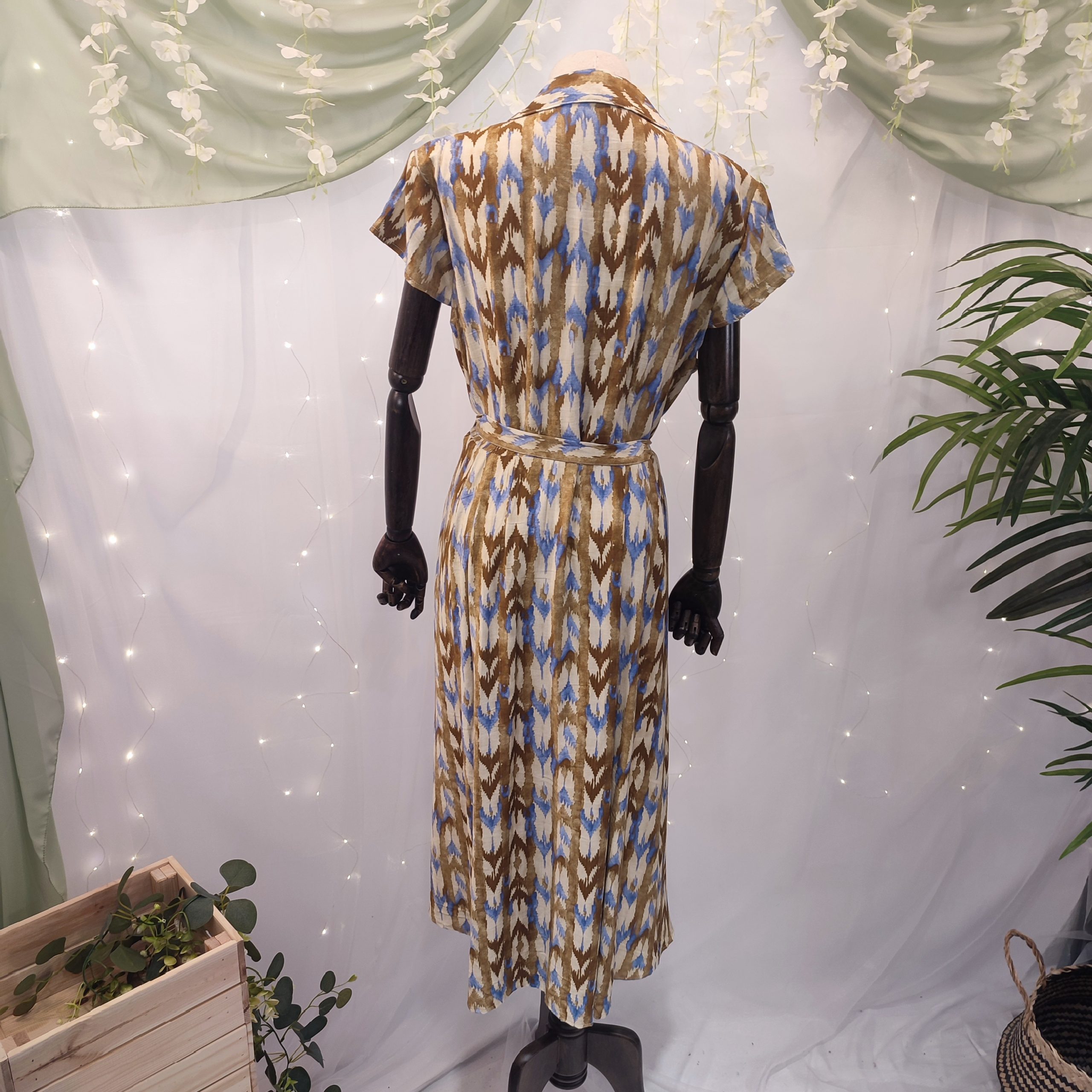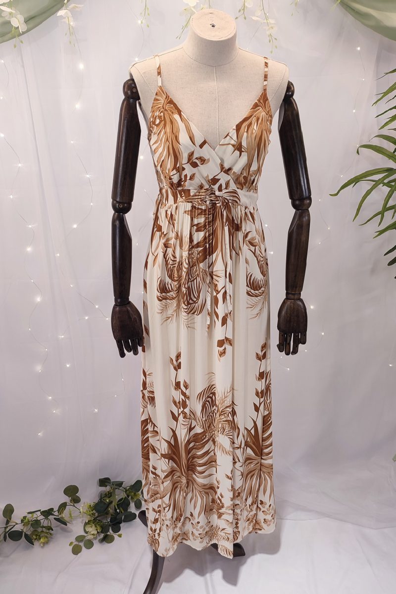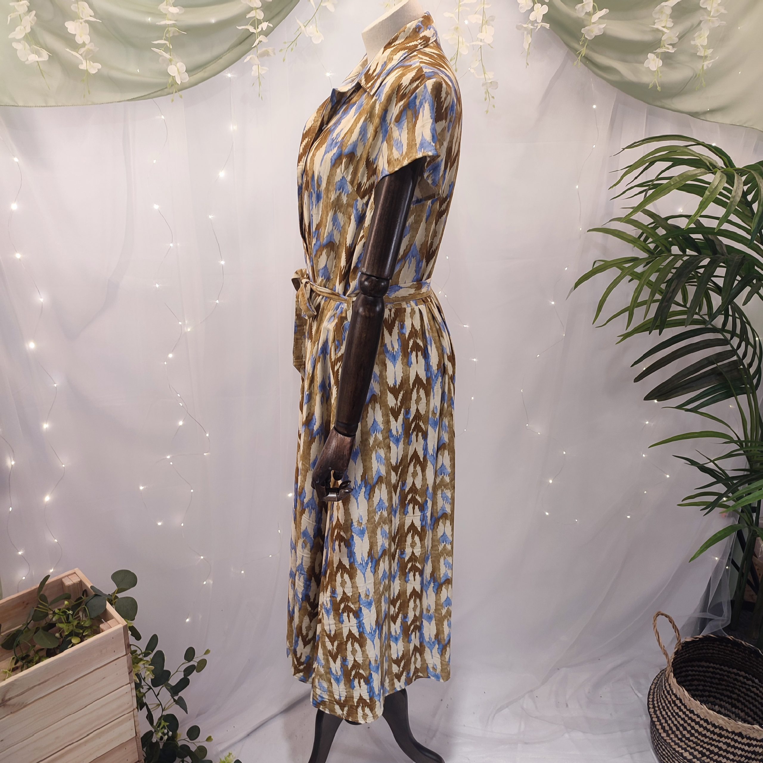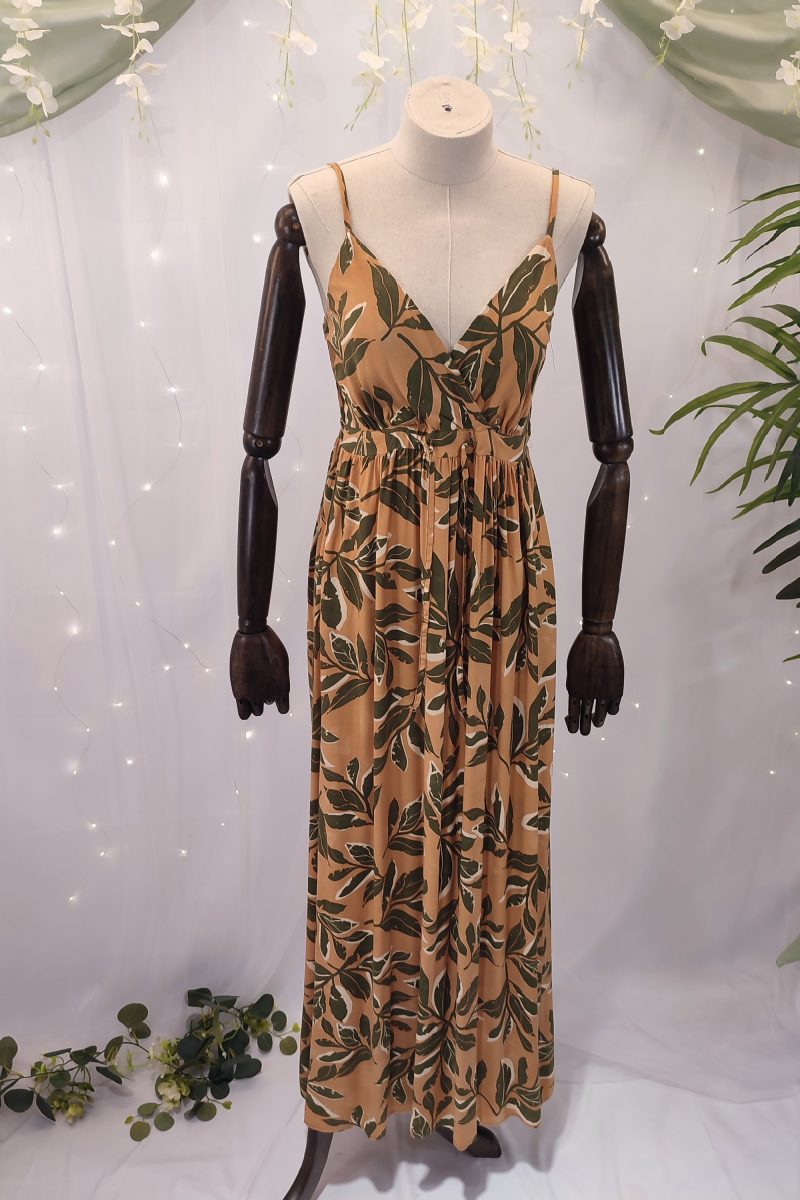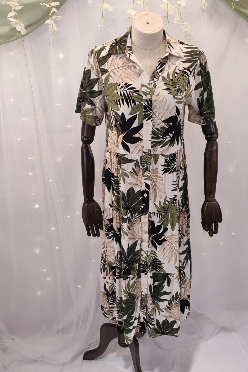 Este vestido largo para mujer es mucho más que una prenda: es una declaración de estilo con raíces. Diseñado con un cuello italiano tipo camisa y una abertura frontal completa, combina elegancia clásica con un toque moderno y desenfadado. Su silueta fluida se ajusta sutilmente a la figura gracias a un cinturón de cuerda a juego, confeccionado con el mismo tejido y estampado del vestido, que marca la cintura de forma favorecedora.