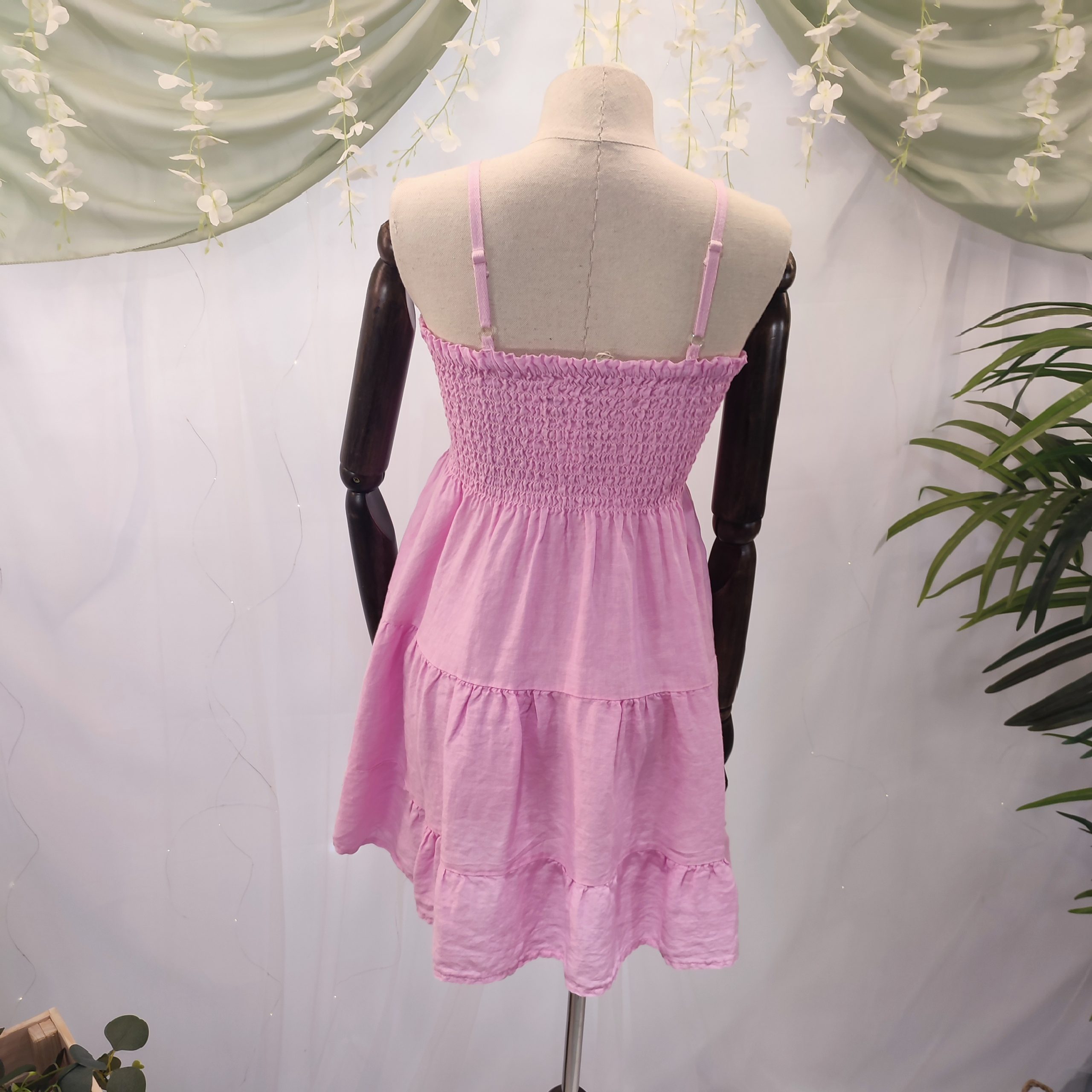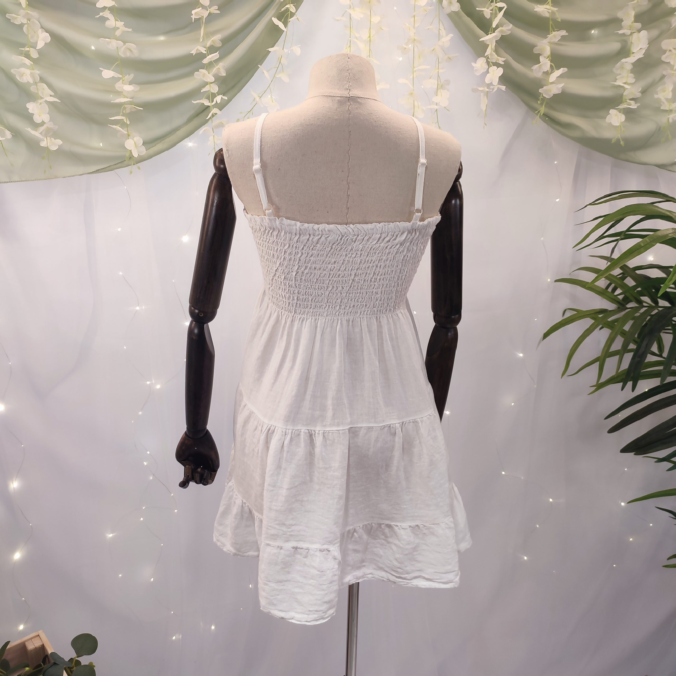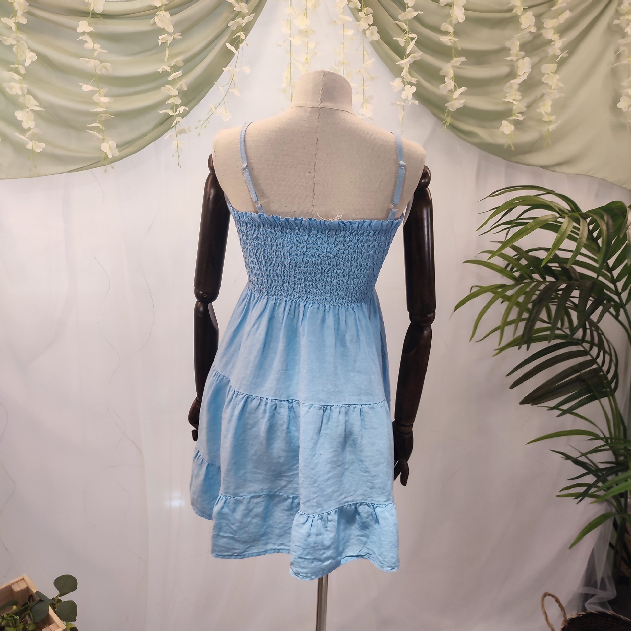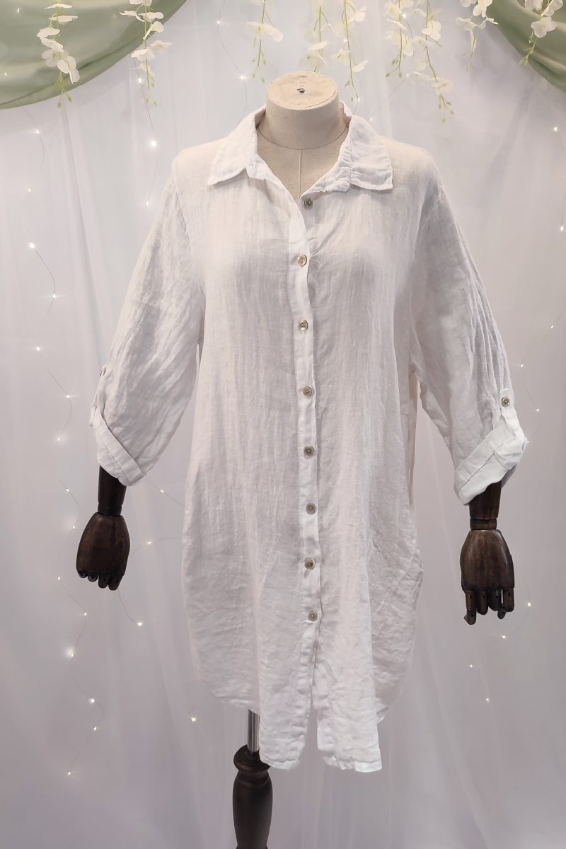Su tejido de lino lo convierte en una prenda extremadamente fresca, ligera y transpirable, ideal para soportar las altas temperaturas sin perder la elegancia. Su diseño liso sin estampados resalta la belleza de lo simple, y está disponible en 6 tonos naturales —blanco, beige, marrón chocolate, rosa, azul celeste y verde militar— que evocan la calma y la sofisticación del estilo isleño.