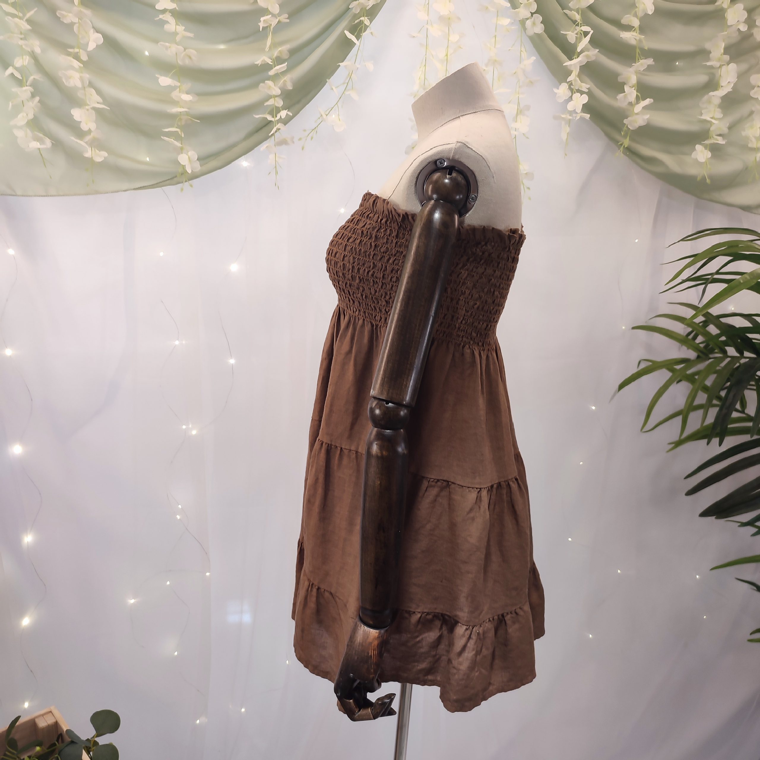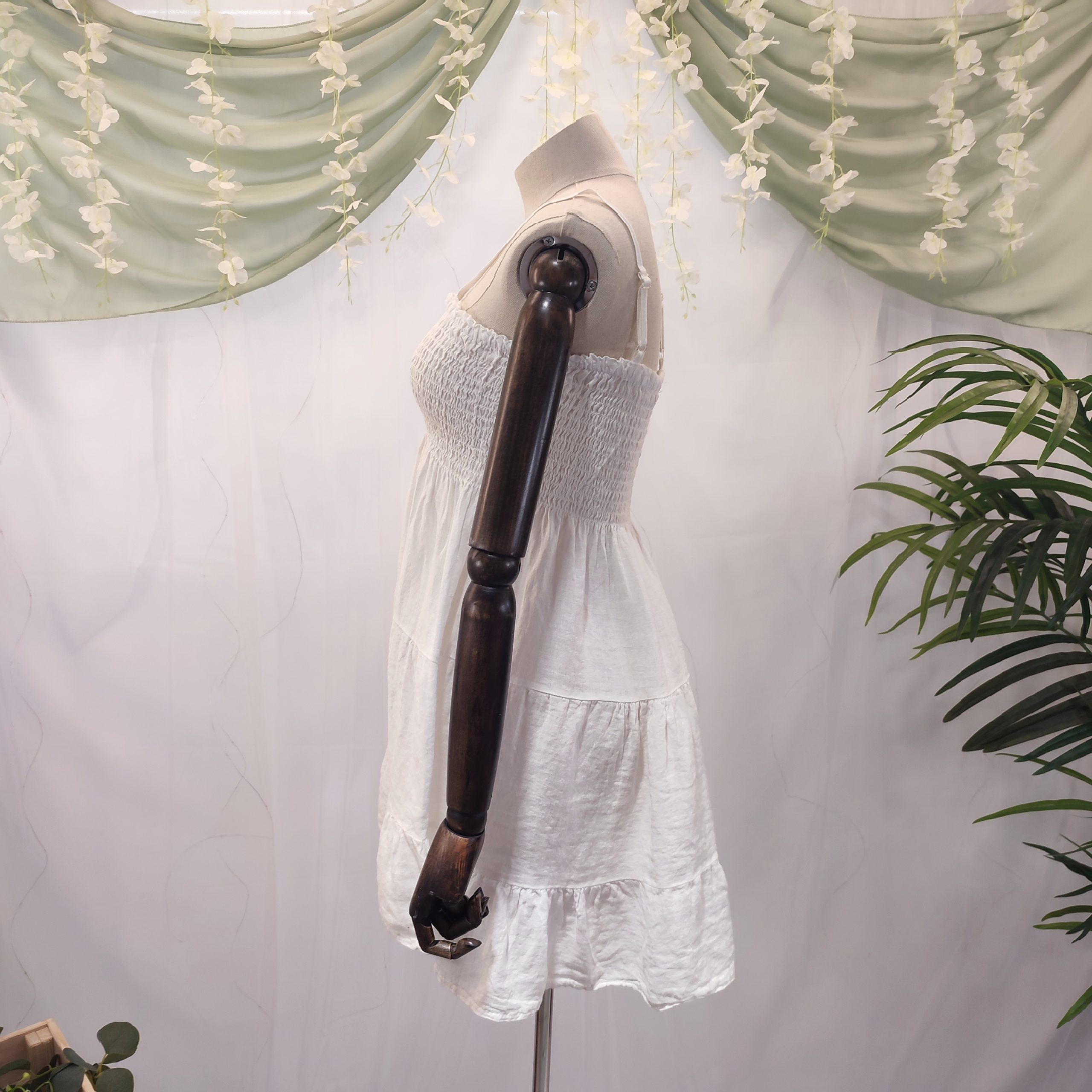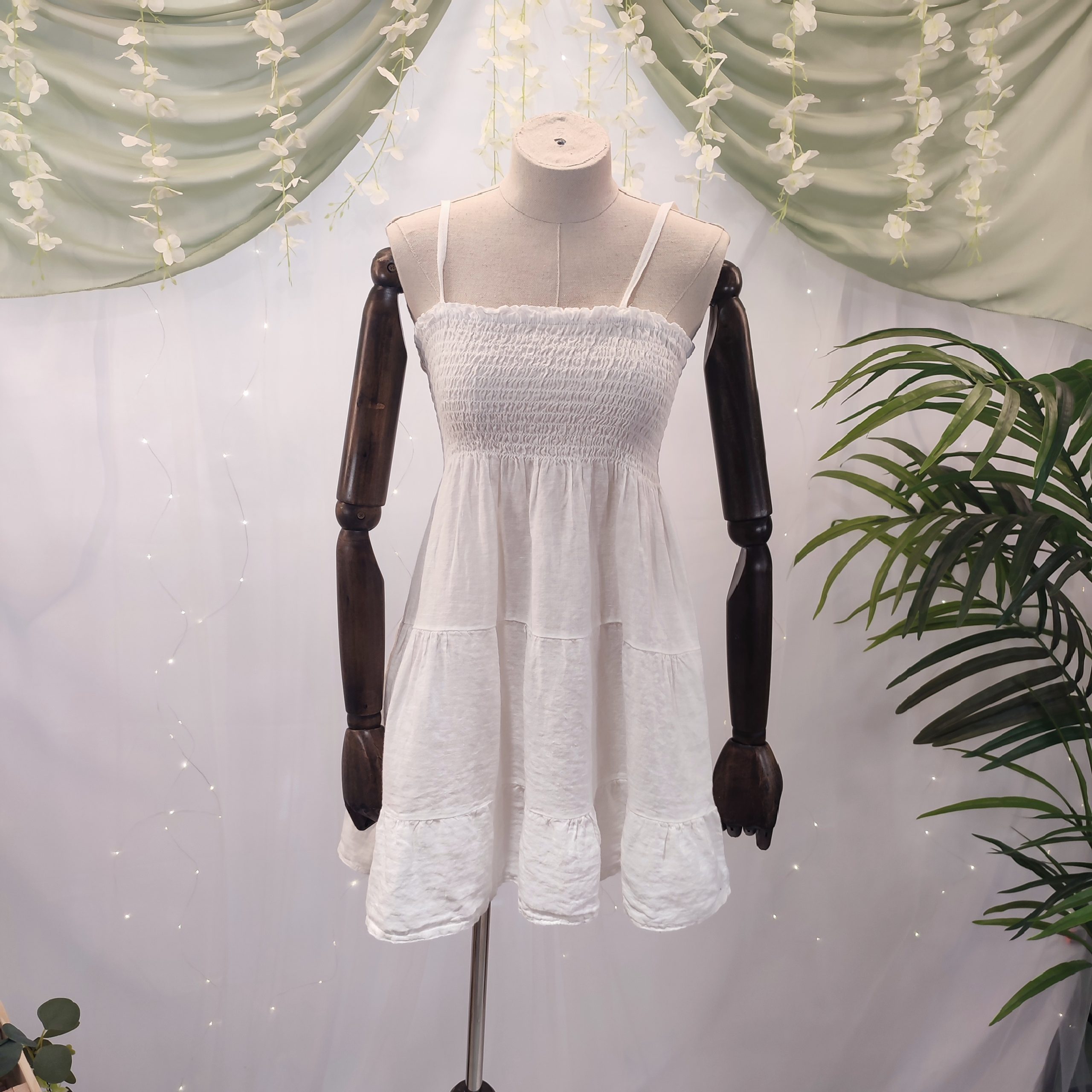 Su tejido de lino lo convierte en una prenda extremadamente fresca, ligera y transpirable, ideal para soportar las altas temperaturas sin perder la elegancia. Su diseño liso sin estampados resalta la belleza de lo simple, y está disponible en 6 tonos naturales —blanco, beige, marrón chocolate, rosa, azul celeste y verde militar— que evocan la calma y la sofisticación del estilo isleño.