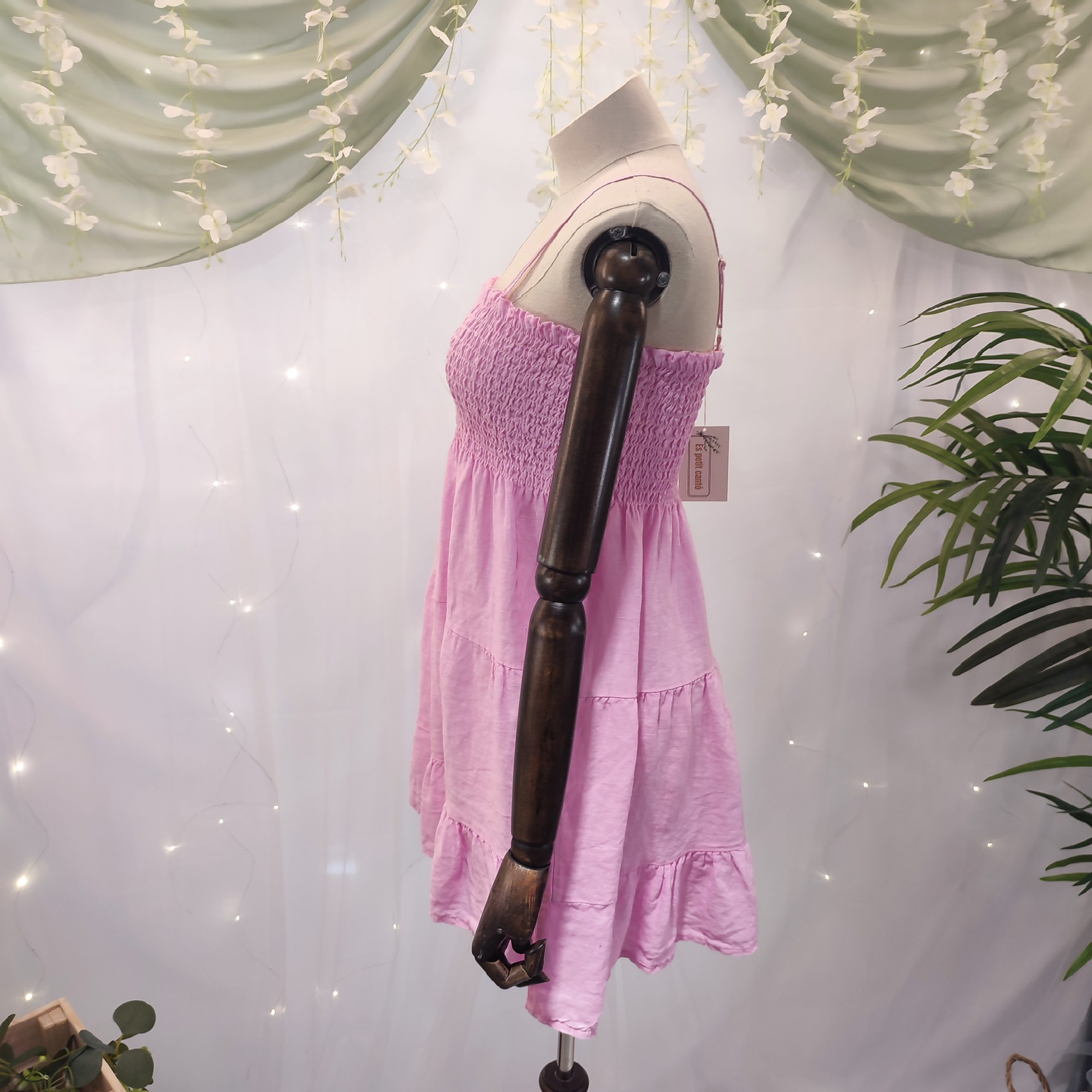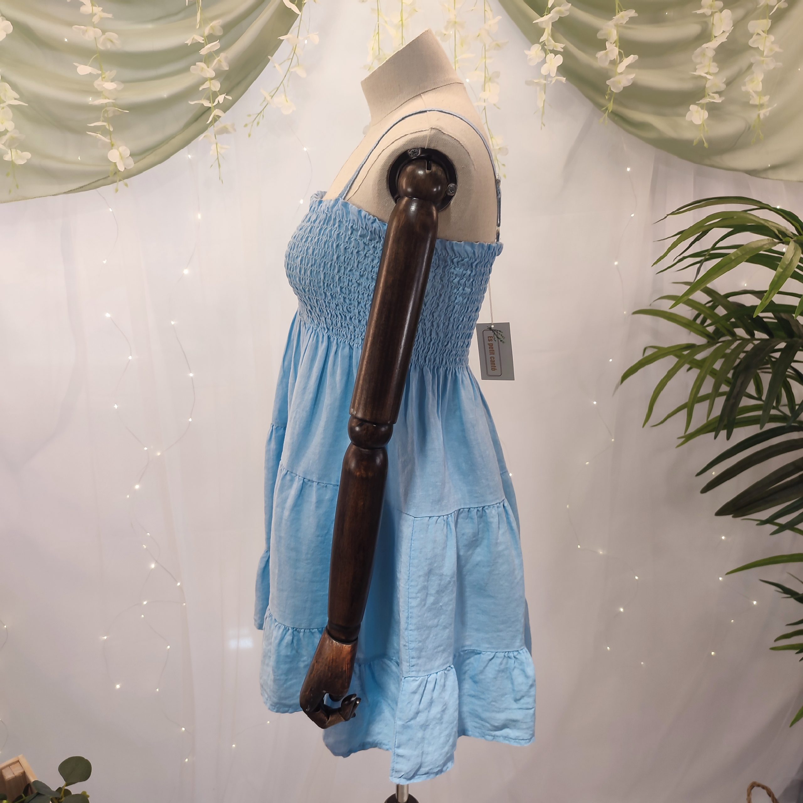 Sencillez, frescura y elegancia se dan la mano en este vestido midi corto, confeccionado en lino 100% natural. Un diseño limpio y atemporal, pensado para mujeres que valoran la comodidad sin renunciar al estilo. Ideal para los días de verano en Baleares o cualquier destino mediterráneo, este vestido es la elección perfecta para paseos junto al mar, momentos de relax en el barco o escapadas urbanas con encanto.