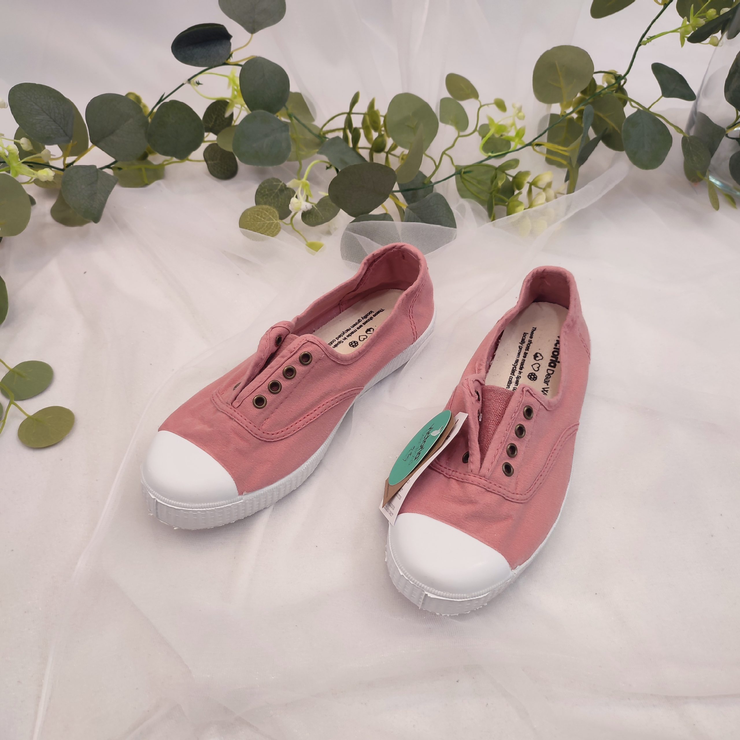 Zapatillas de lona sin cordón para mujer fabricadas en una combinación única de algodón reciclado DREC® (Dyeable Recycled Eco Cotton) y algodón ecológico cultivado, hilado y tejido en España, representan un paso hacia la sostenibilidad. La suela de caucho natural vulcanizado proporciona durabilidad, mientras que el refuerzo de goma en la puntera añade resistencia adicional. El diseño sin cordones se complementa con un elástico suave en el empeine e incluyen una plantilla interior extraíble que aporta un mayor confort.